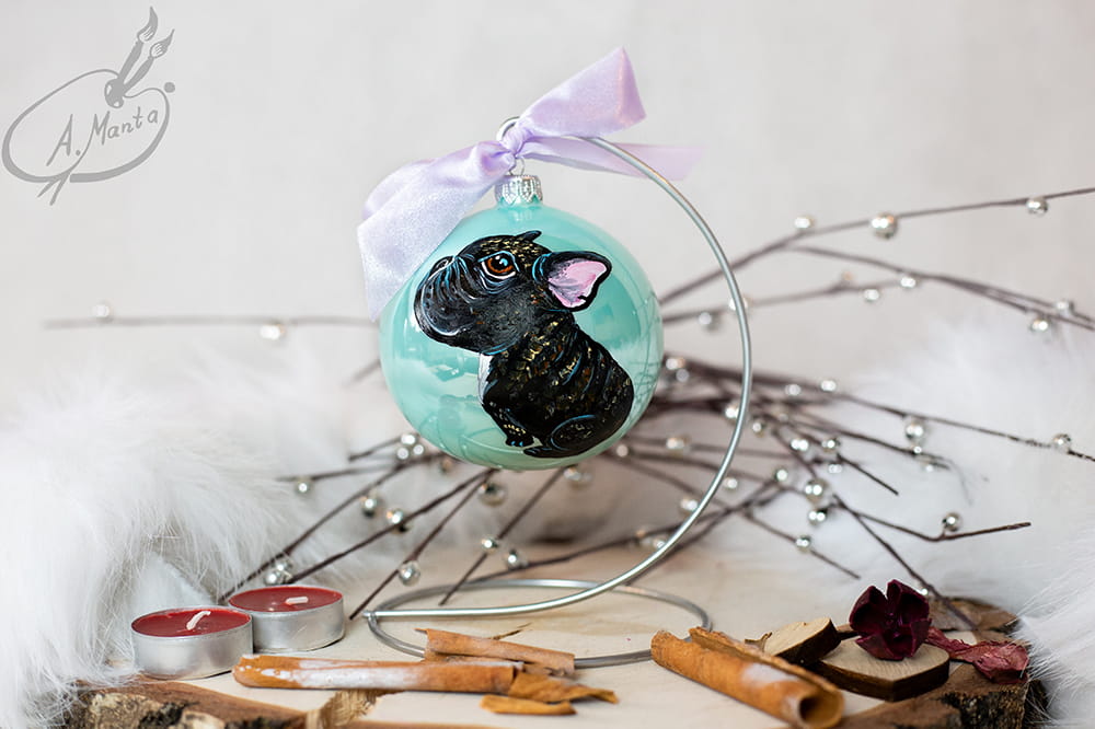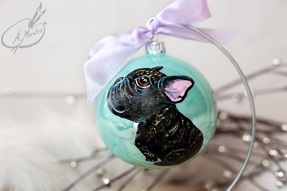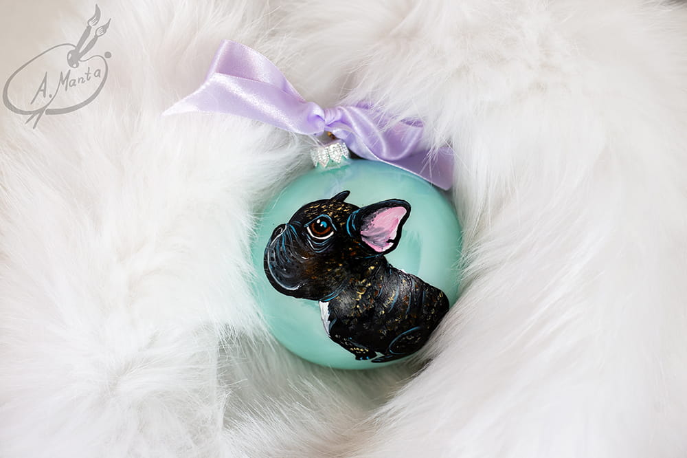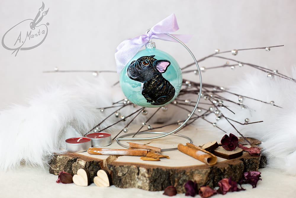 Wyjątkowa bombka choinkowa ręcznie malowana Buldożek francuski