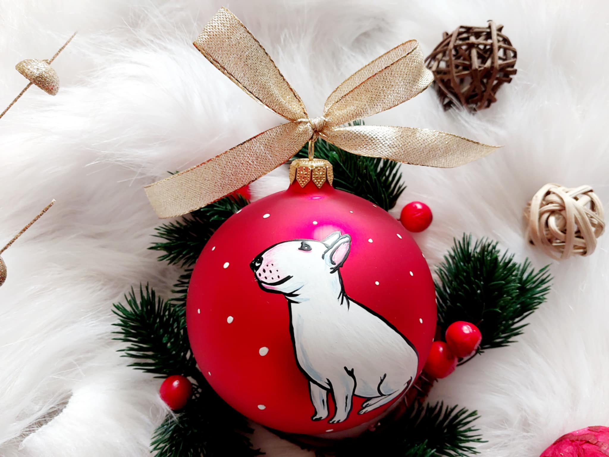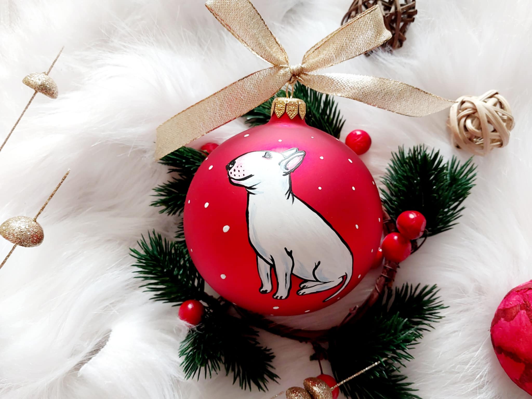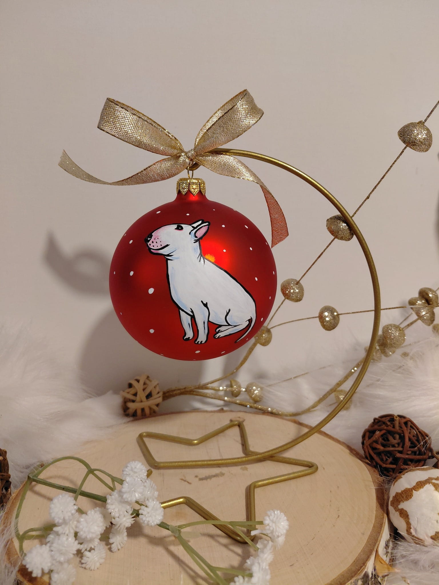 Możliwość dopisania imienia lub krótkiego napisu na odwrocie bombki. Istnieje możliwość zamówienia innego koloru bombki - zapytaj o dostępne kolory bombek.