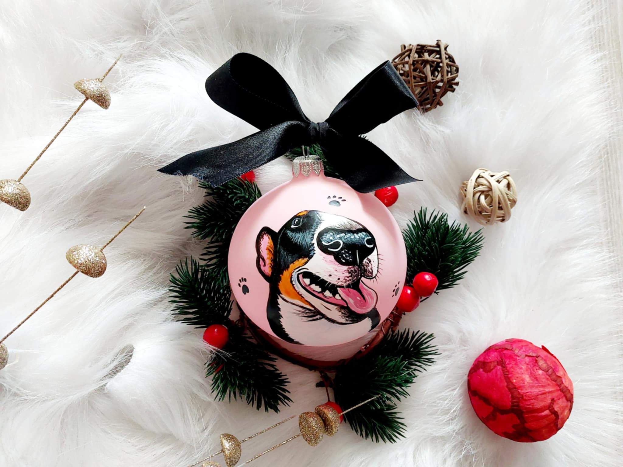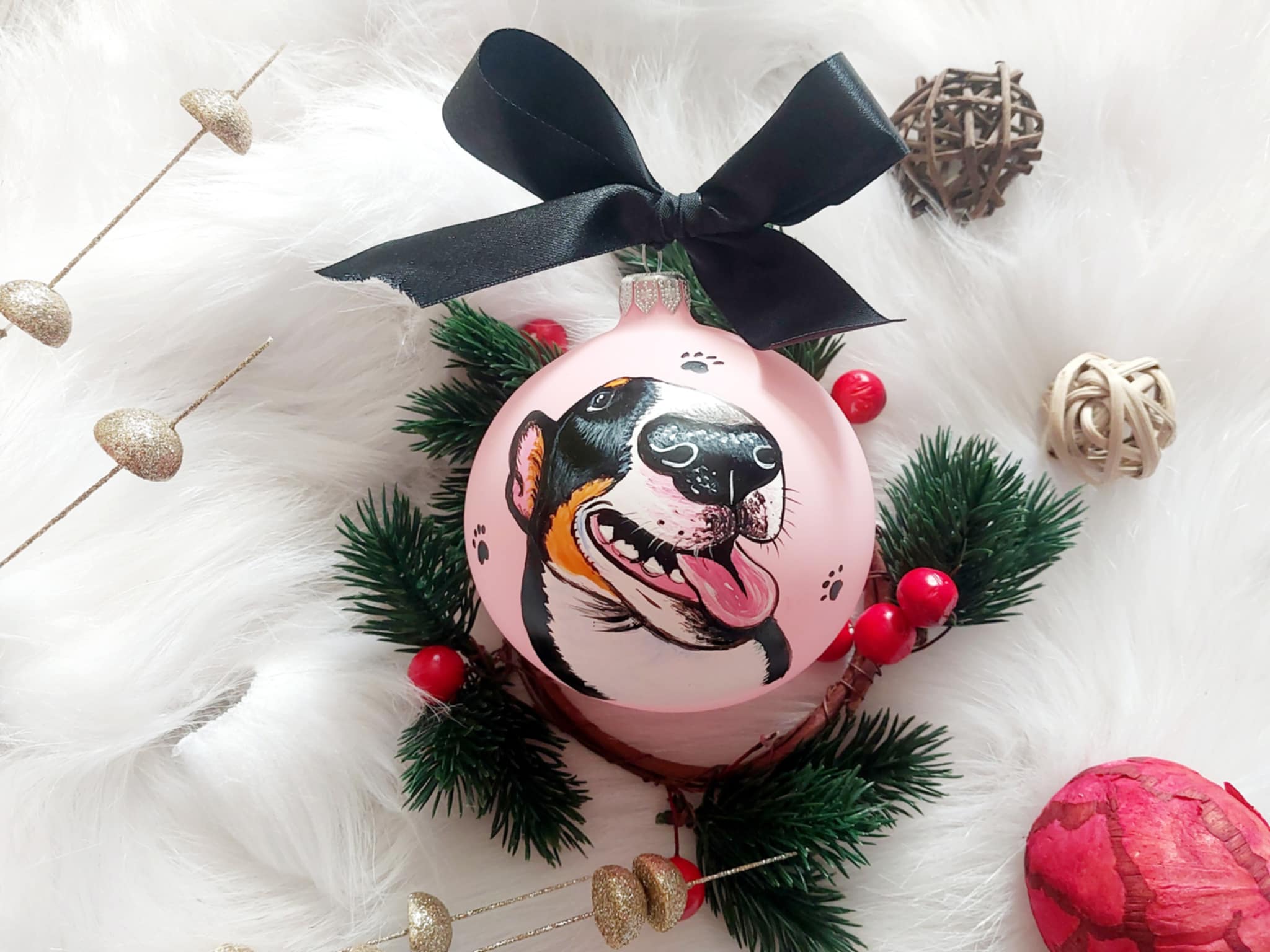 Wyjątkowa bombka choinkowa ręcznie malowana Bulterier