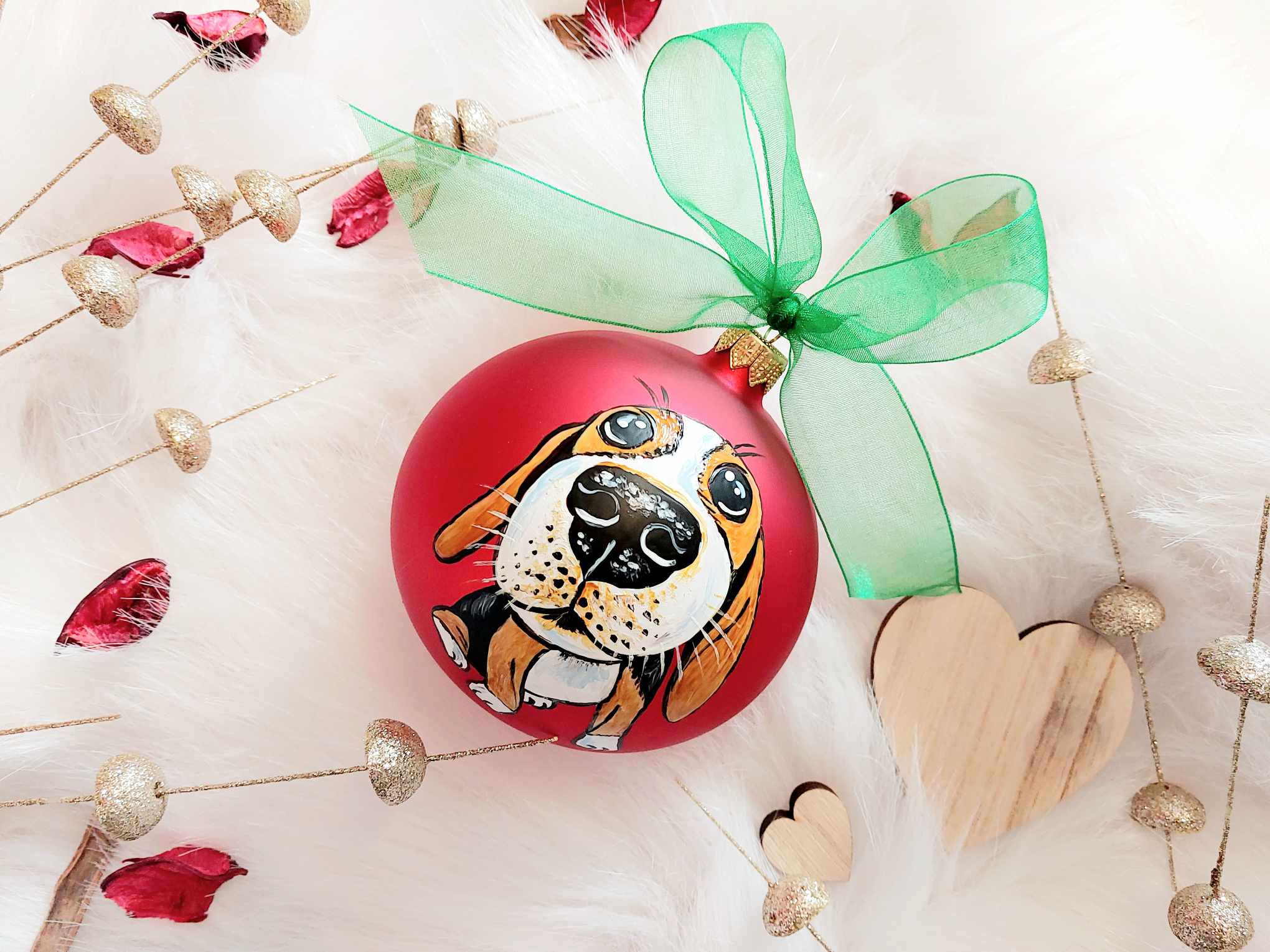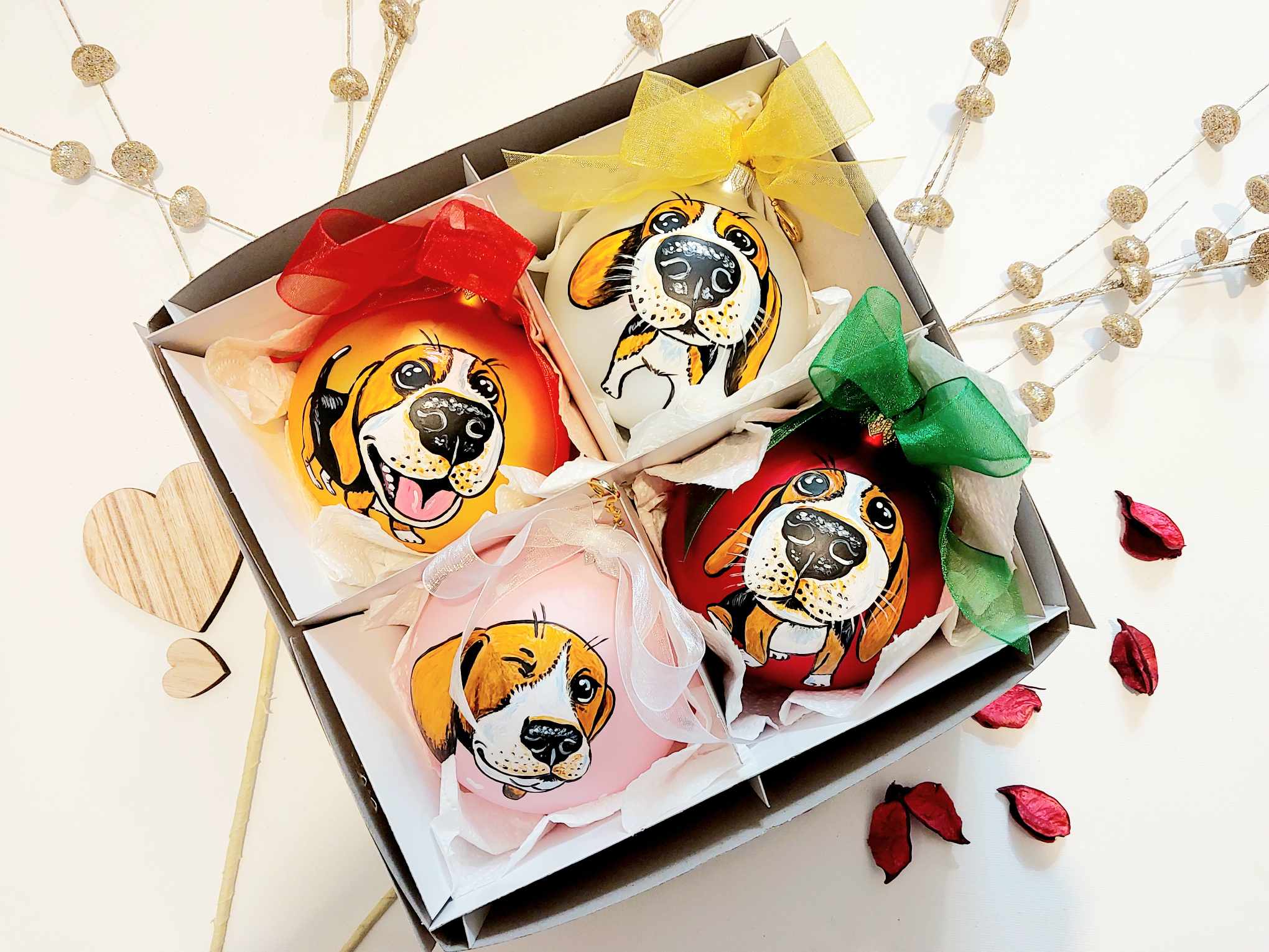 Wyjątkowe bombki choinkowe ręcznie malowane Beagle - zestaw 4 sztuk