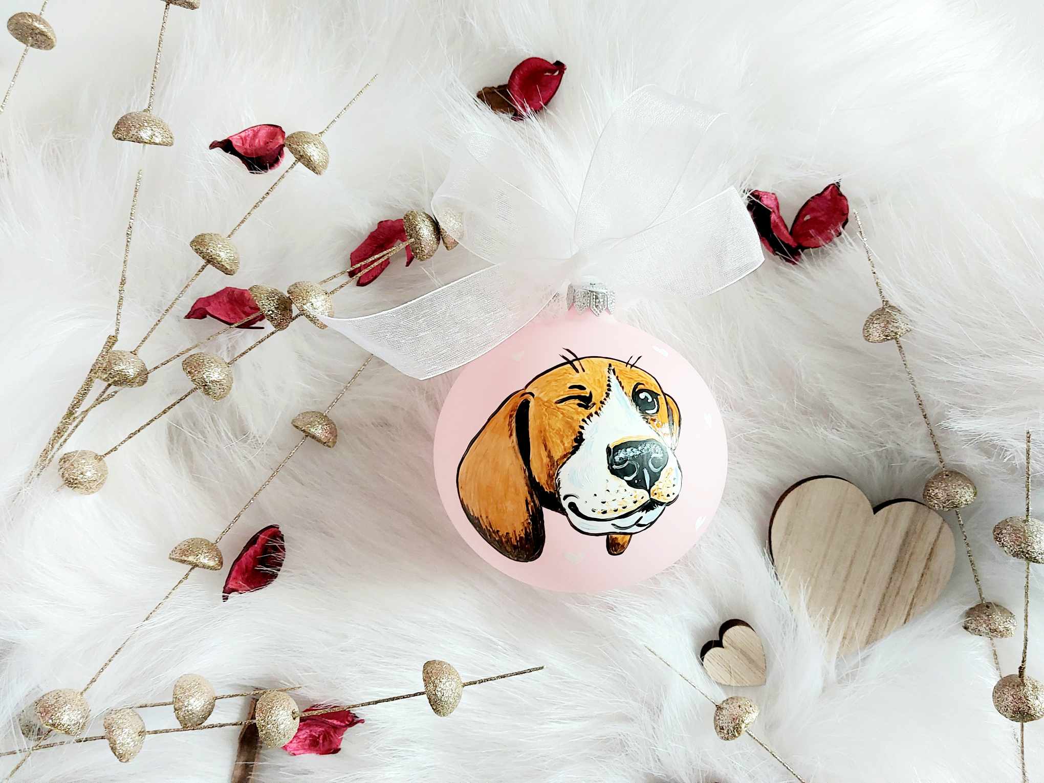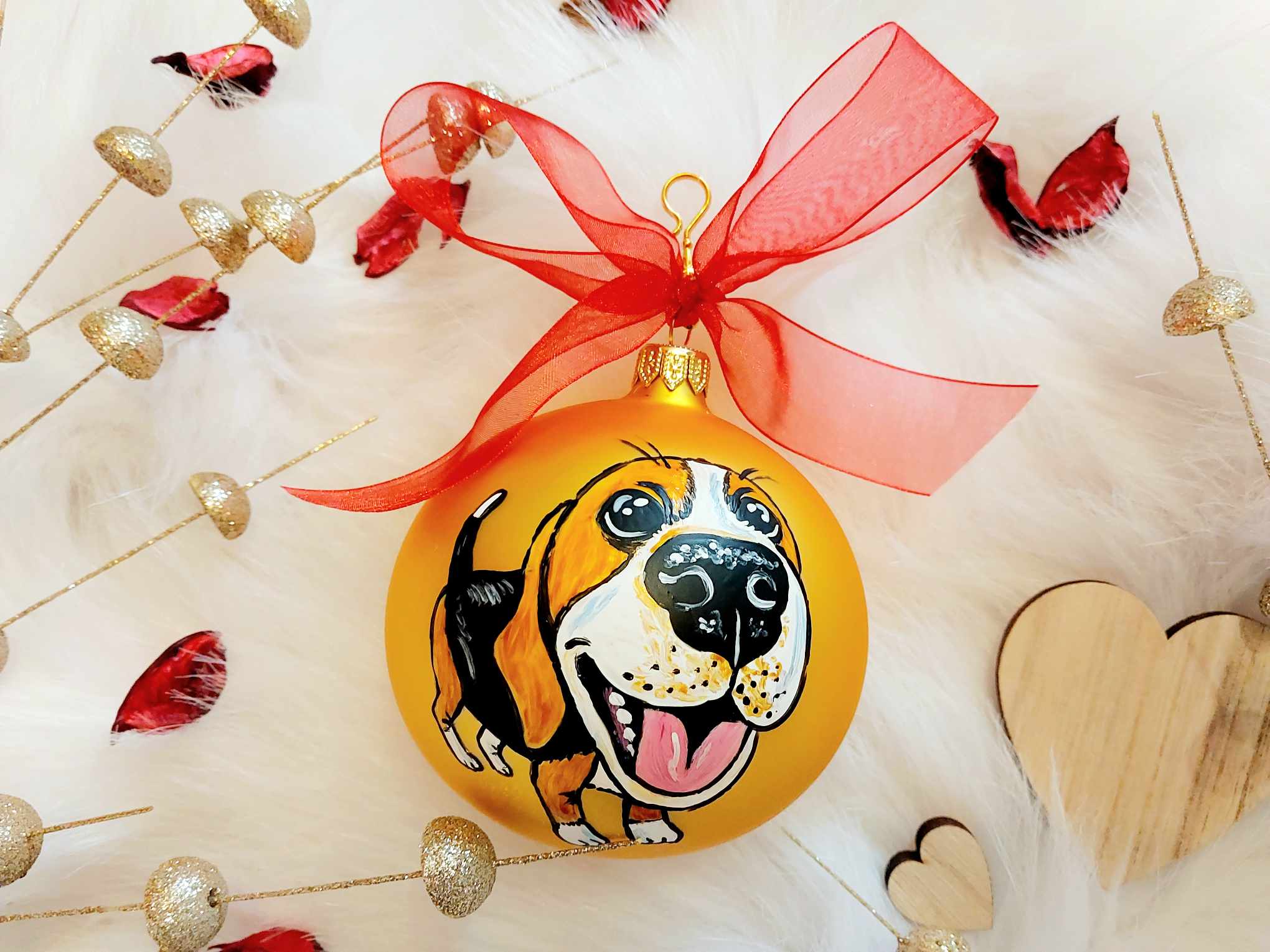 Bombki choinkowe ręcznie malowane Beagle - zestaw 4 sztuk