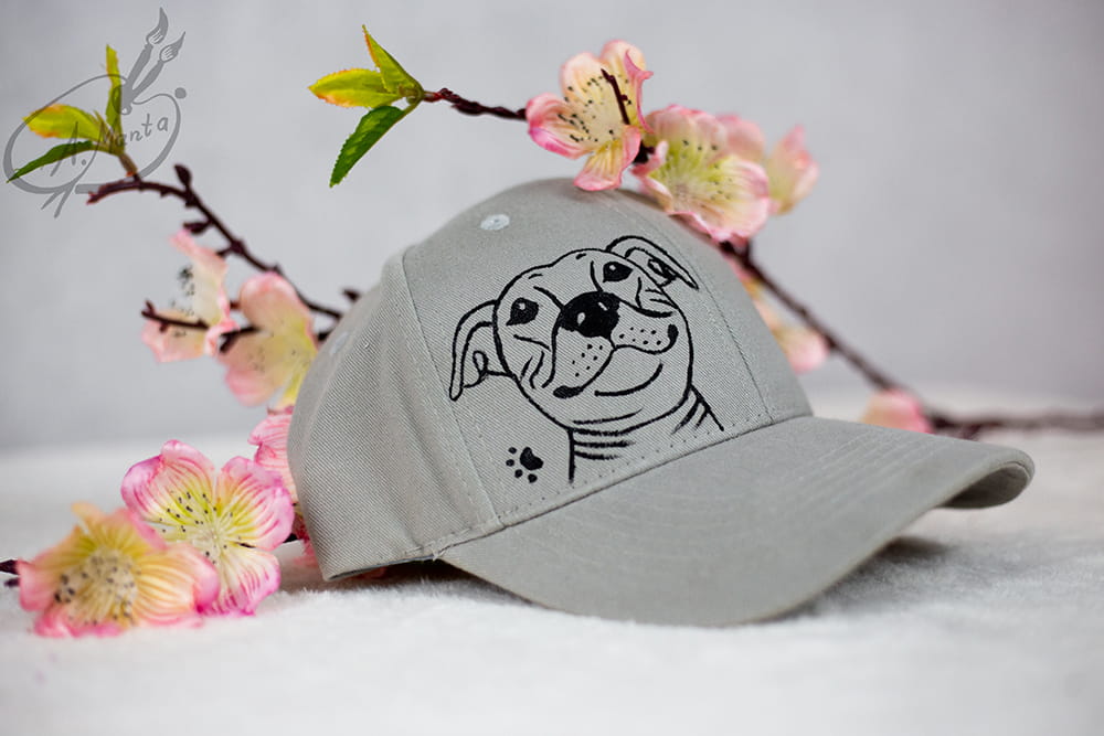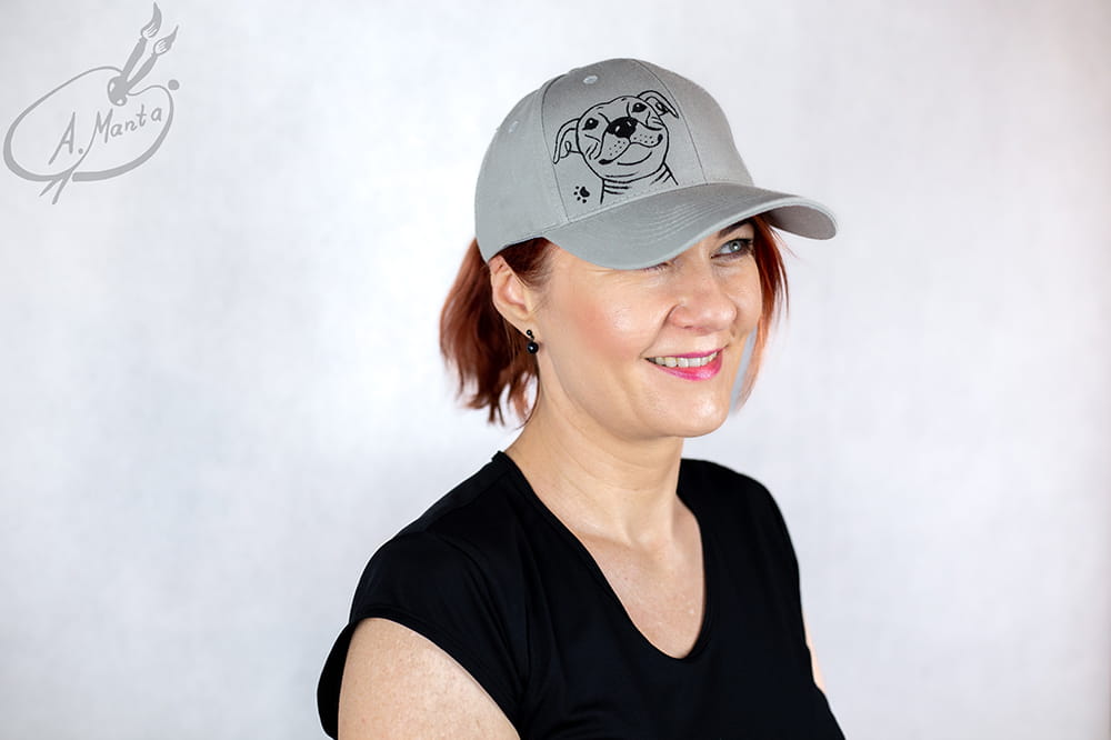 Bardzo twarzowa i niesamowicie wygodna czapka z daszkiem z motywem Staffika to obowiązkowa pozycja w Twojej garderobie - o ile Staffiki są bliskie Twemu sercu :)