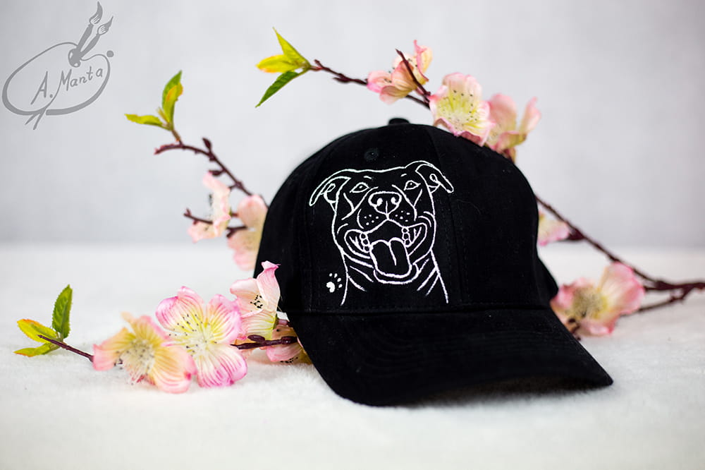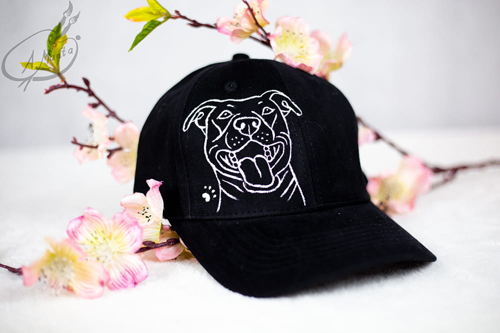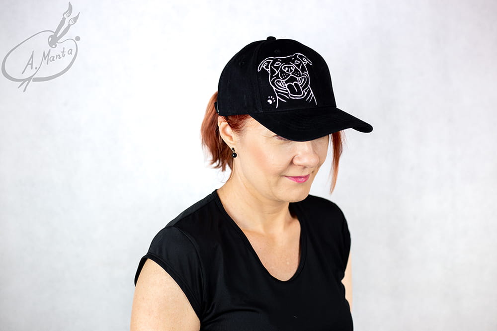 Bardzo twarzowa i niesamowicie wygodna czapka z daszkiem z motywem Amstafa to obowiązkowa pozycja w Twojej garderobie - o ile Amstafy są bliskie Twemu sercu :)
