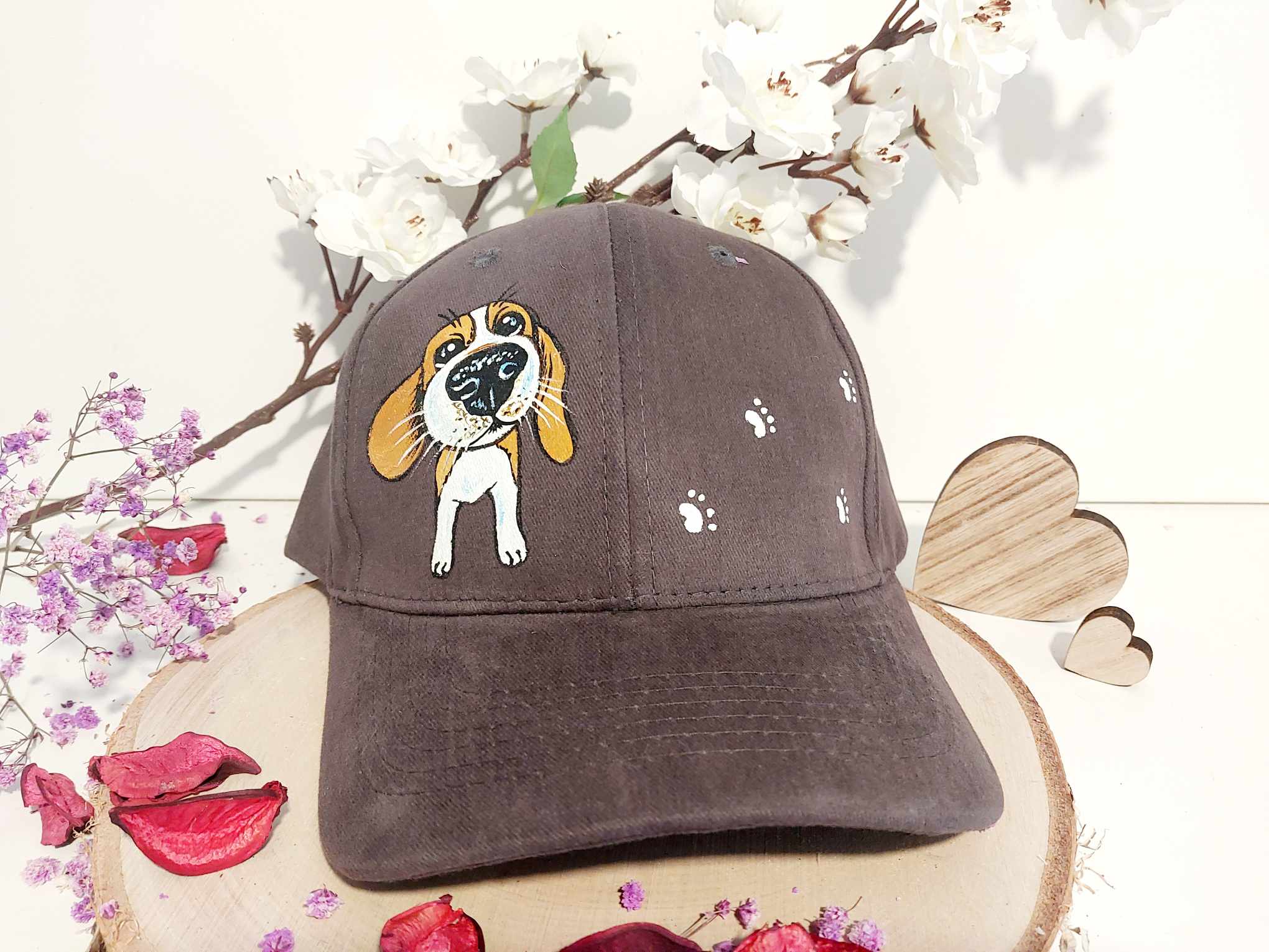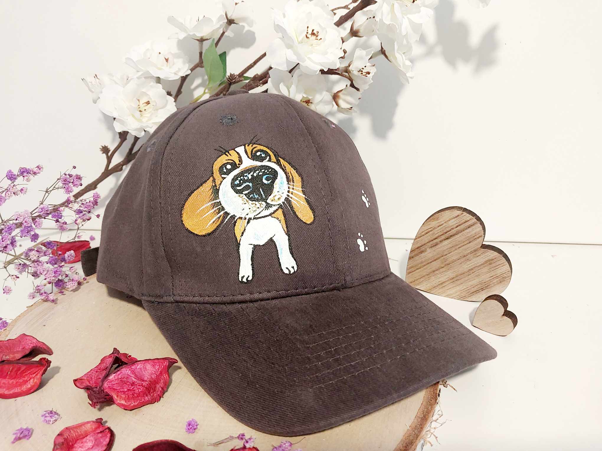 Wyjątkowa ręcznie malowana czapka z daszkiem Beagle.
