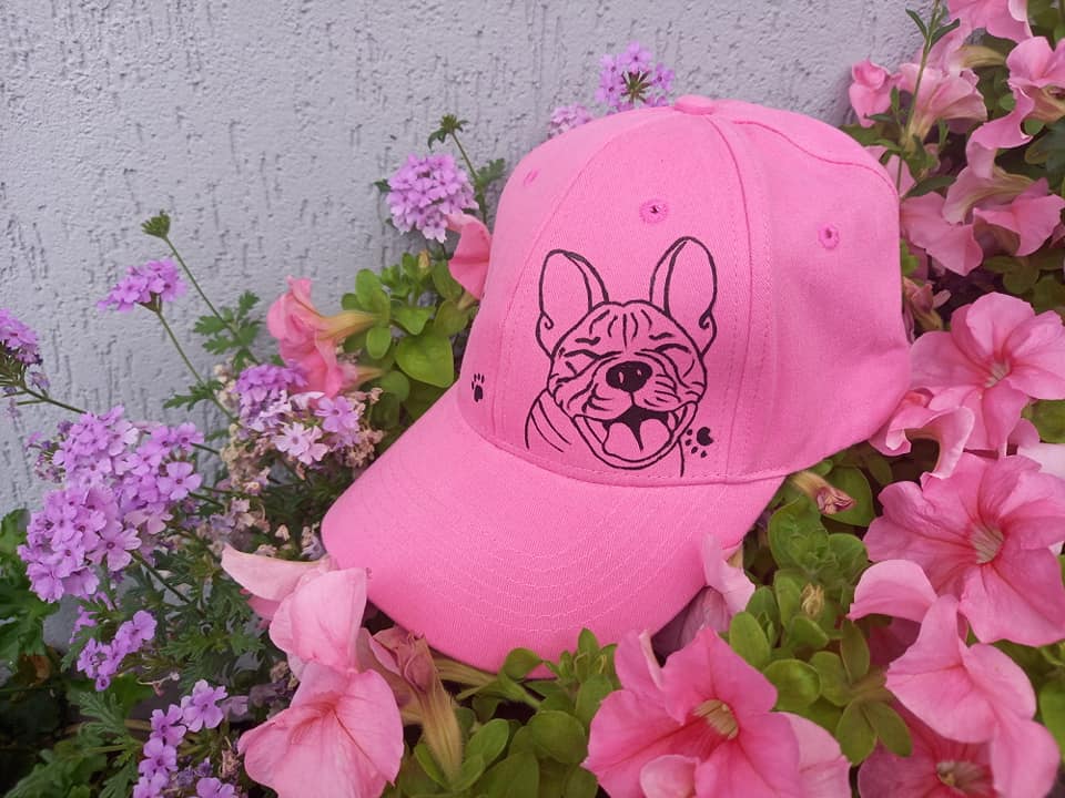 Wyjątkowa ręcznie malowana czapka z daszkiem z Buldogiem Francuskim.