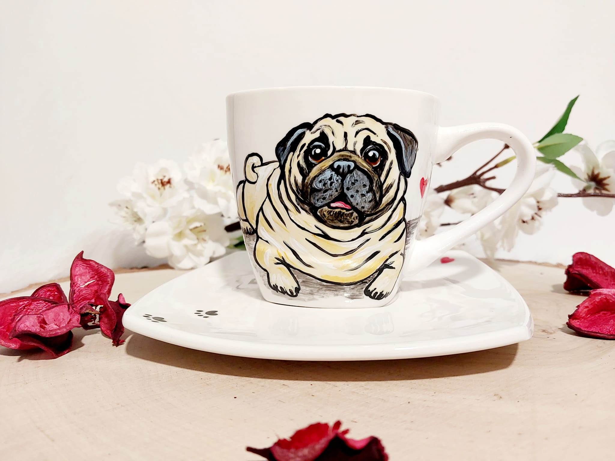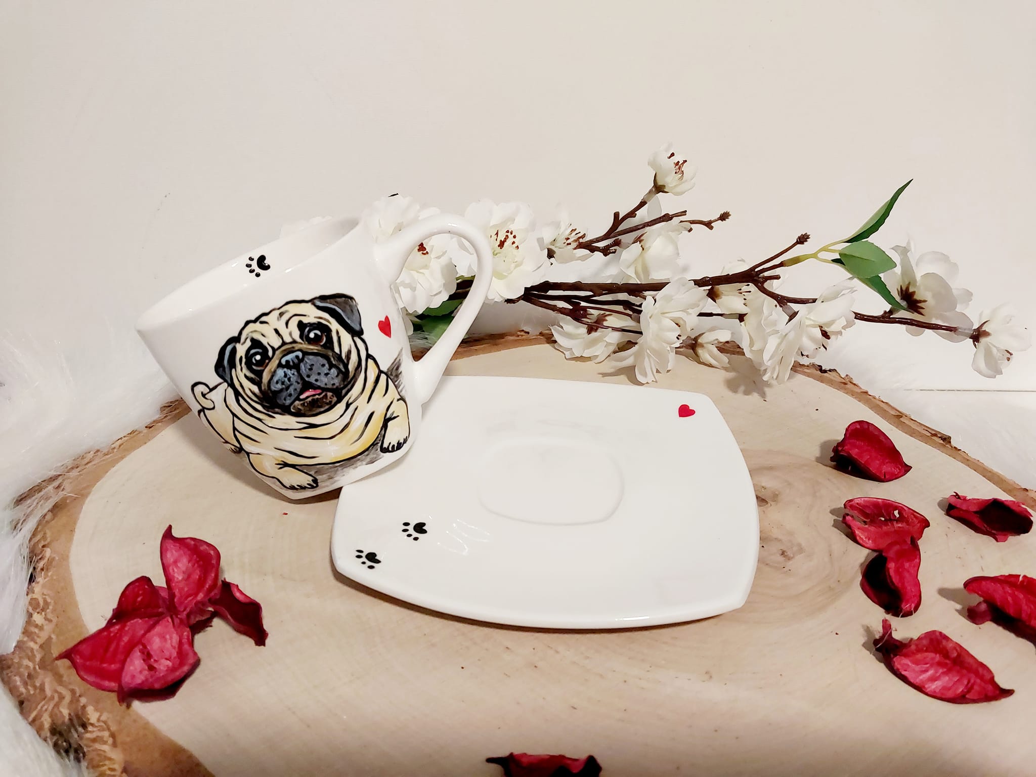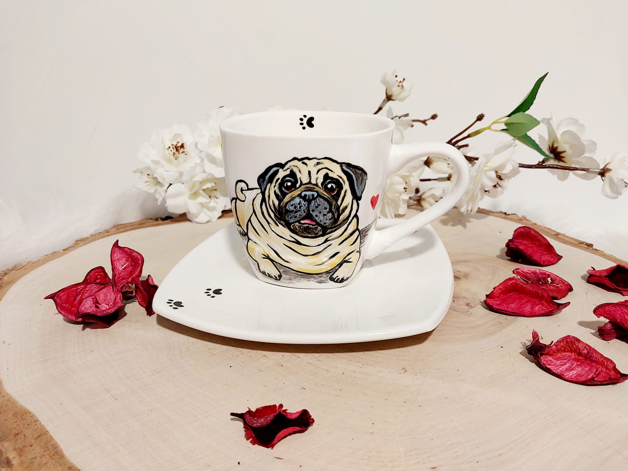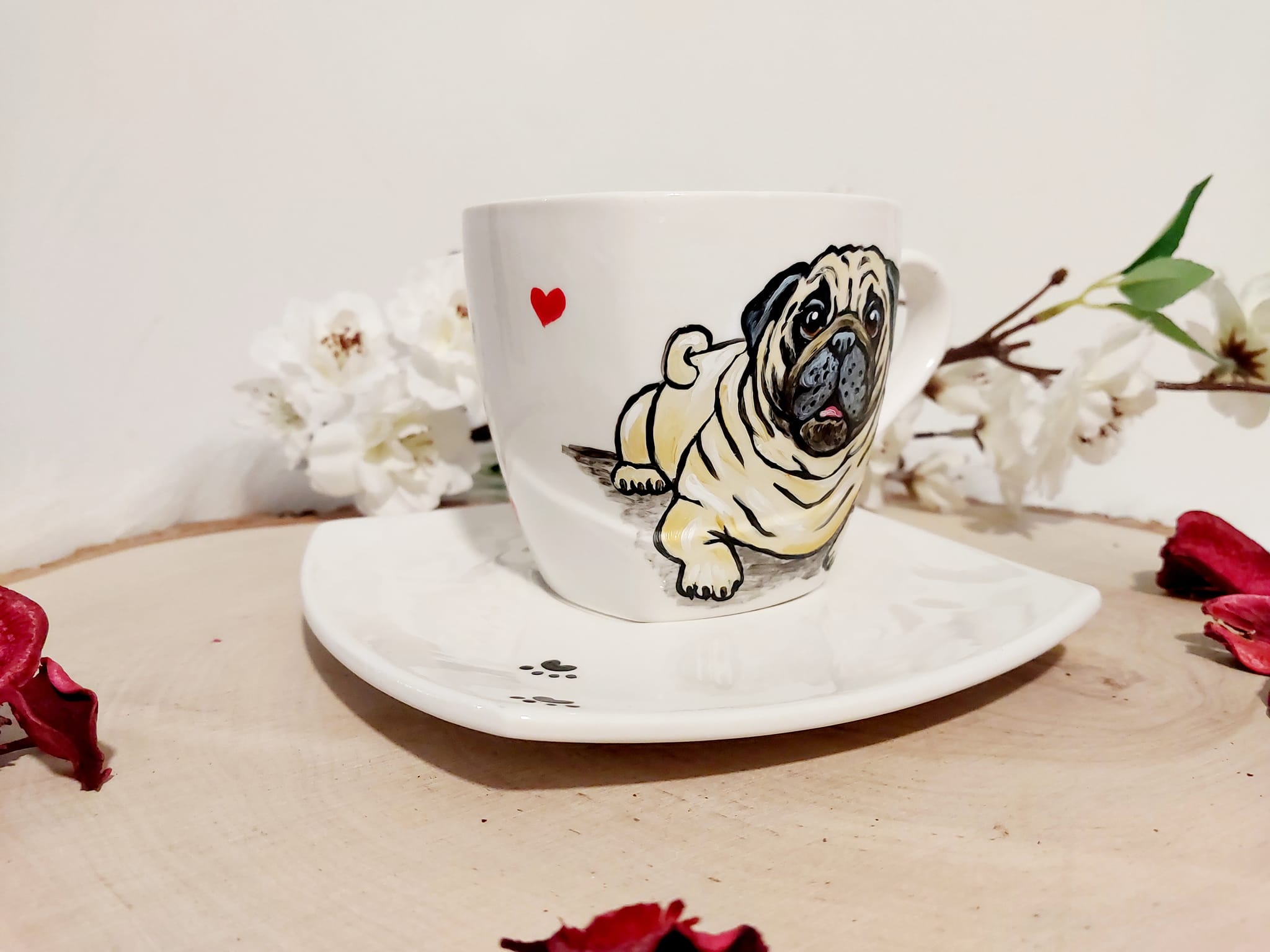 Wyjątkowa, ręcznie malowana filiżanka Mops