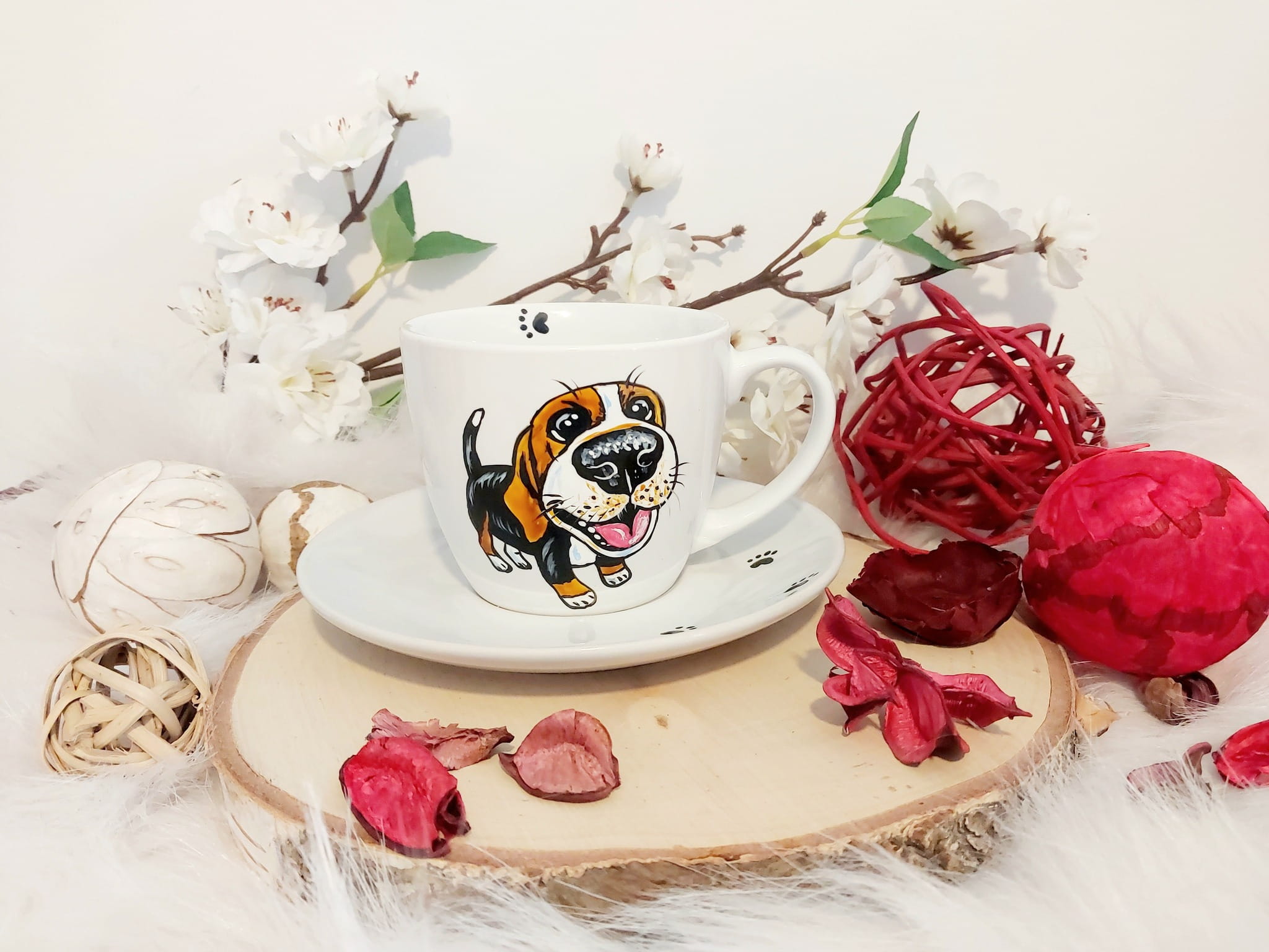Filiżanka ręcznie malowana pies rasy Beagle