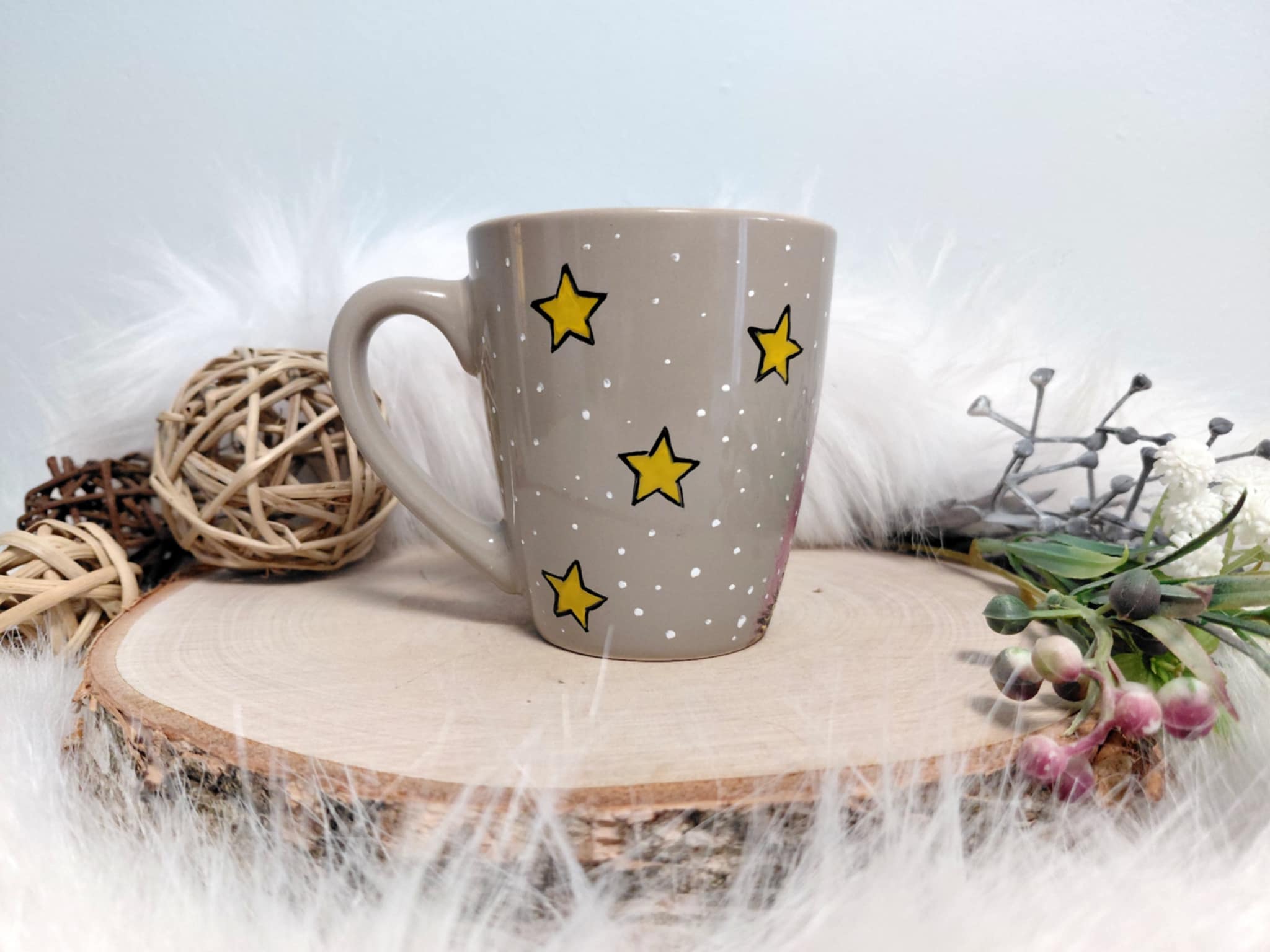 Kubek malowany specjalistycznymi farbami do ceramiki, absolutnie bezpiecznymi, wypalany w 160 stopniach, przez co malunek jest bardzo trwały.