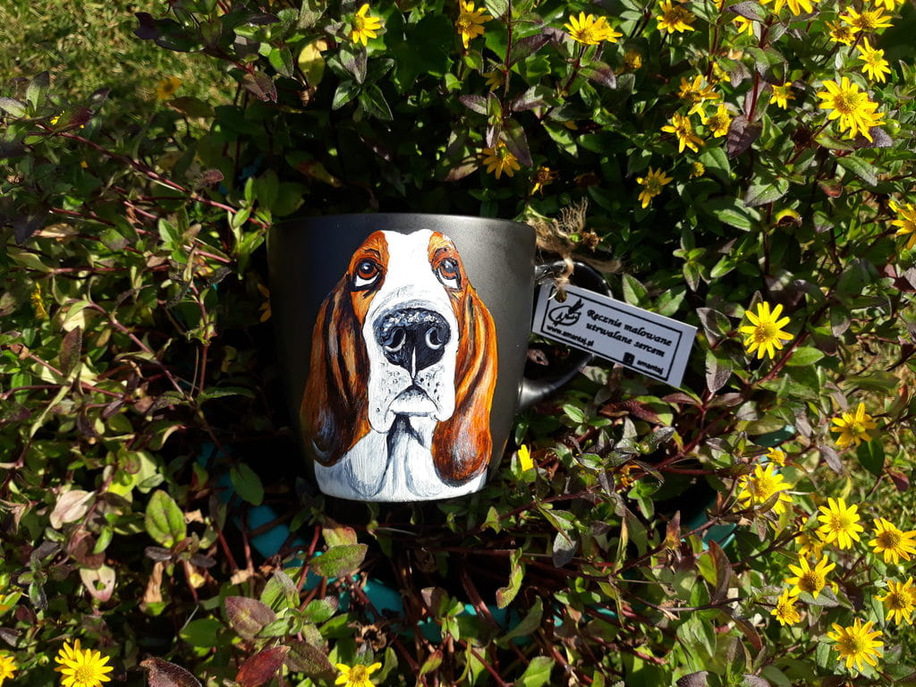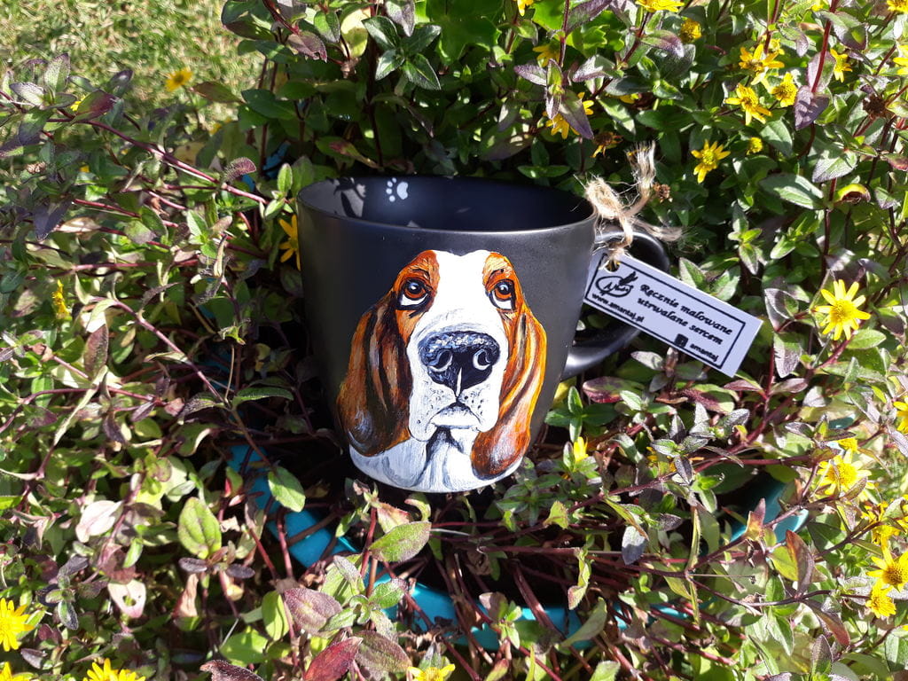 Wyjątkowy, ręcznie malowany kubek z autorskim motywem Basseta.