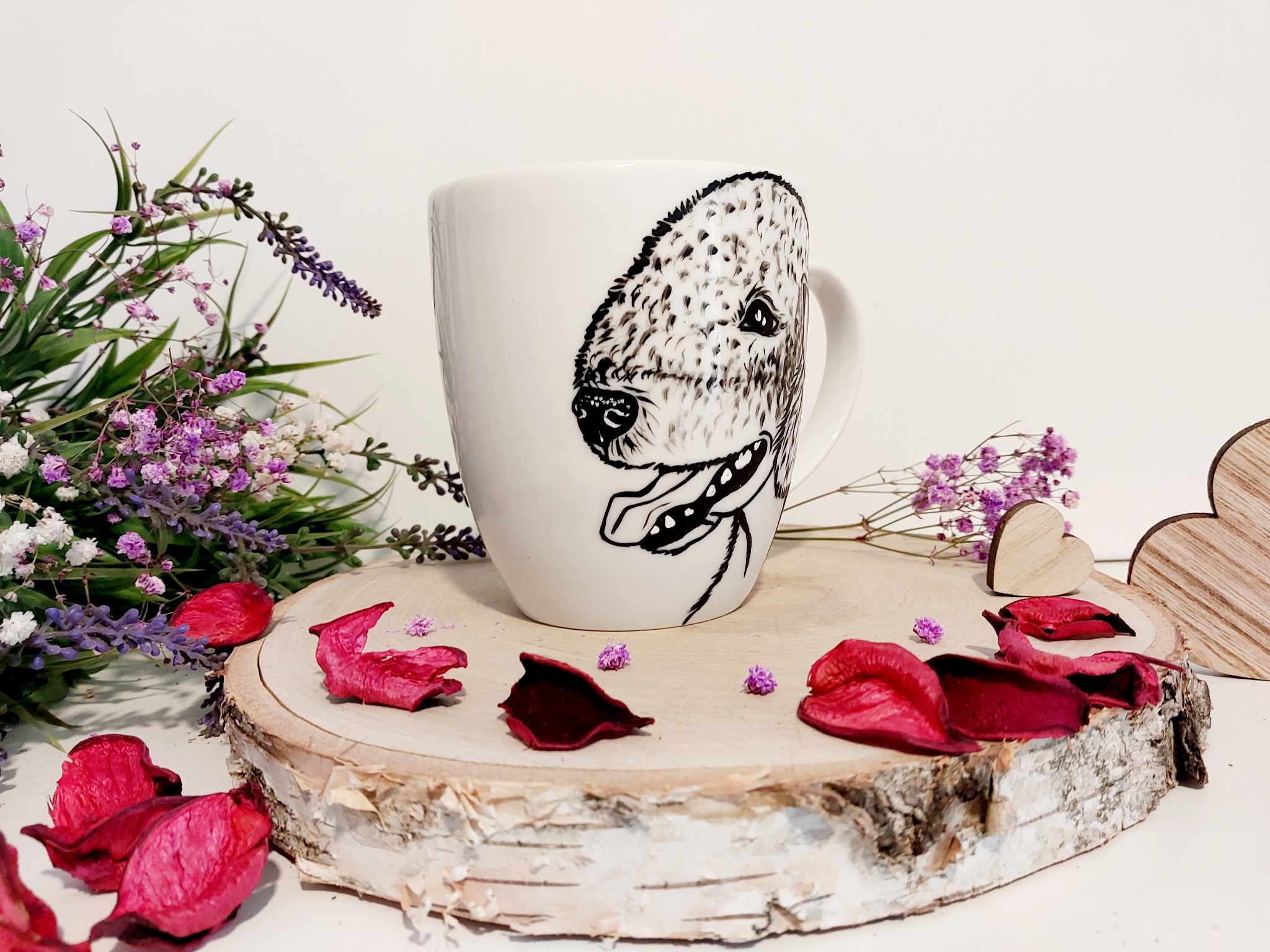 Kubek malowany specjalistycznymi farbami do ceramiki, absolutnie bezpiecznymi, wypalany w 160 stopniach, przez co malunek jest bardzo trwały. By cieszyć się nim dłuuugie lata, zaleca się mycie ręczne :)