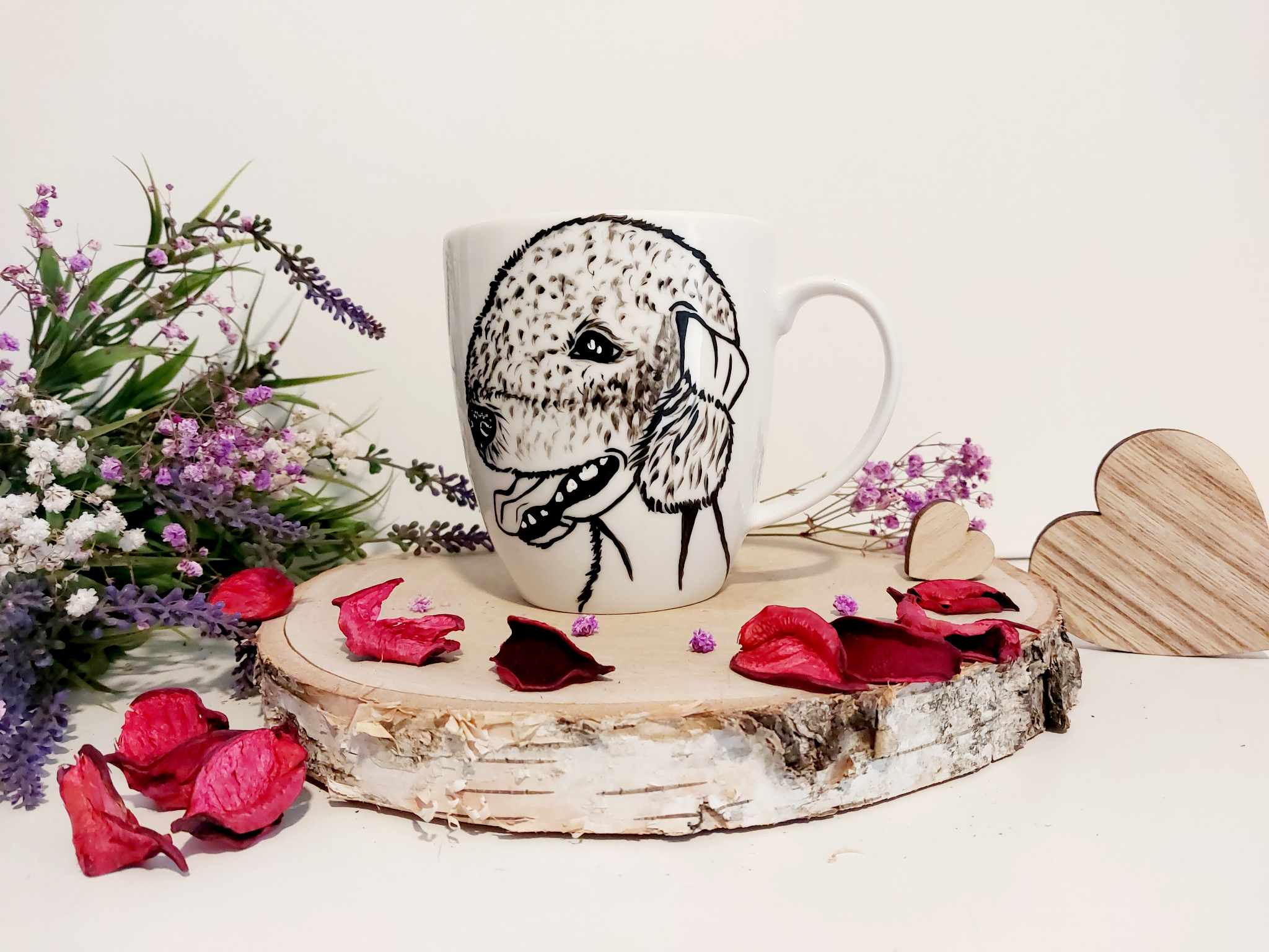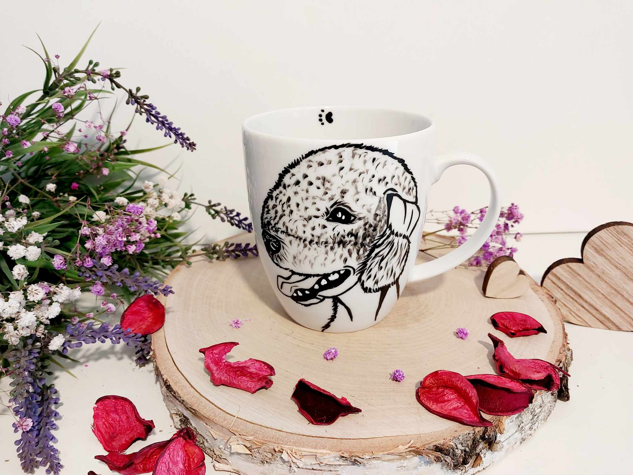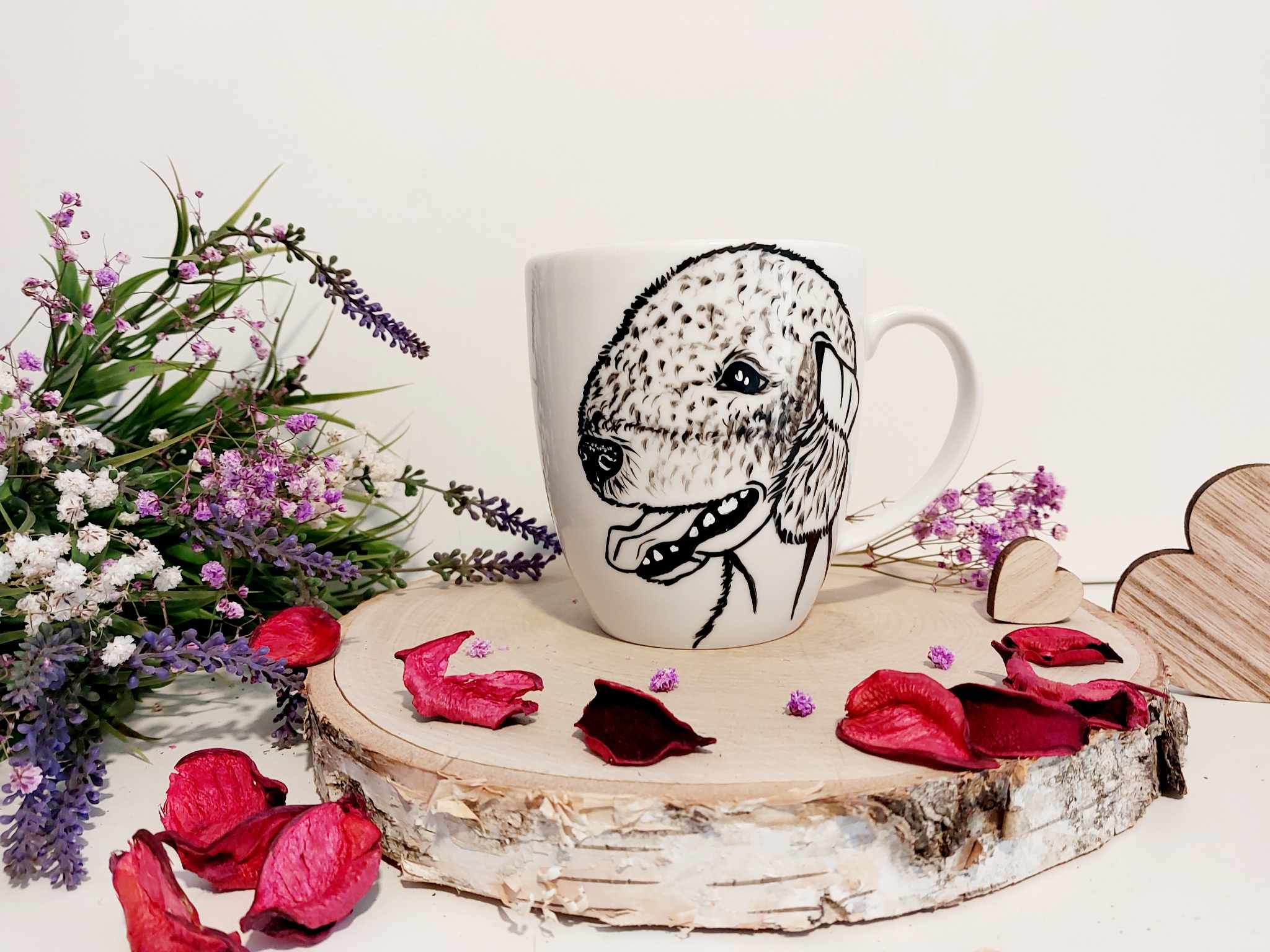 Wyjątkowy, ręcznie malowany kubek Bedlington terier