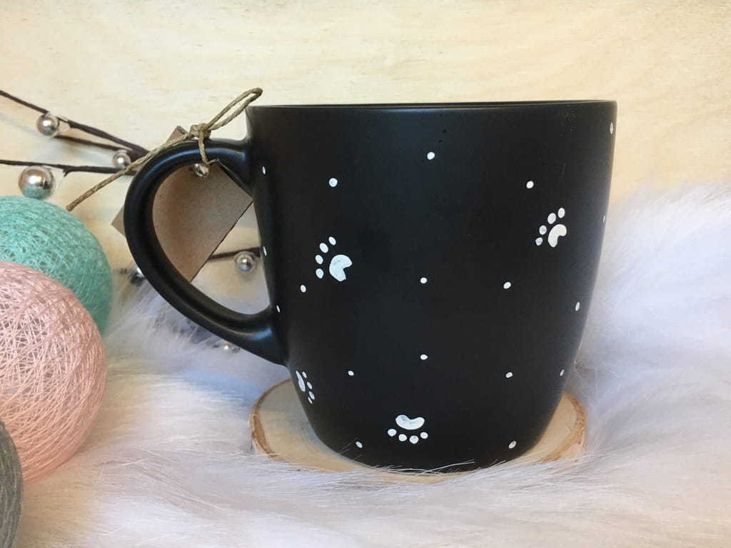 Kubek malowany specjalistycznymi farbami do ceramiki, absolutnie bezpiecznymi, wypalany w 160 stopniach, przez co malunek jest bardzo trwały. By cieszyć się nim dłuuugie lata, zaleca się mycie ręczne :)