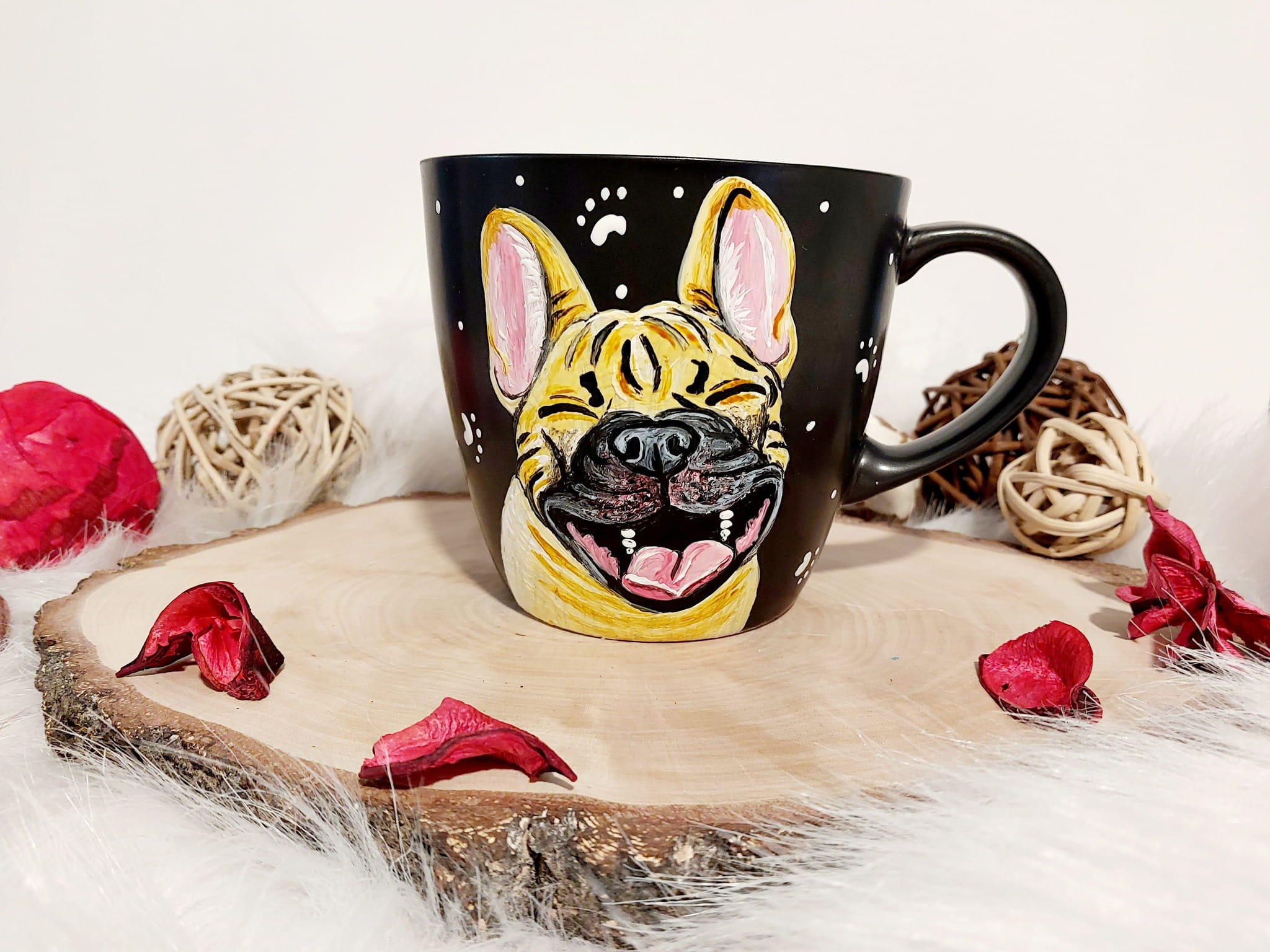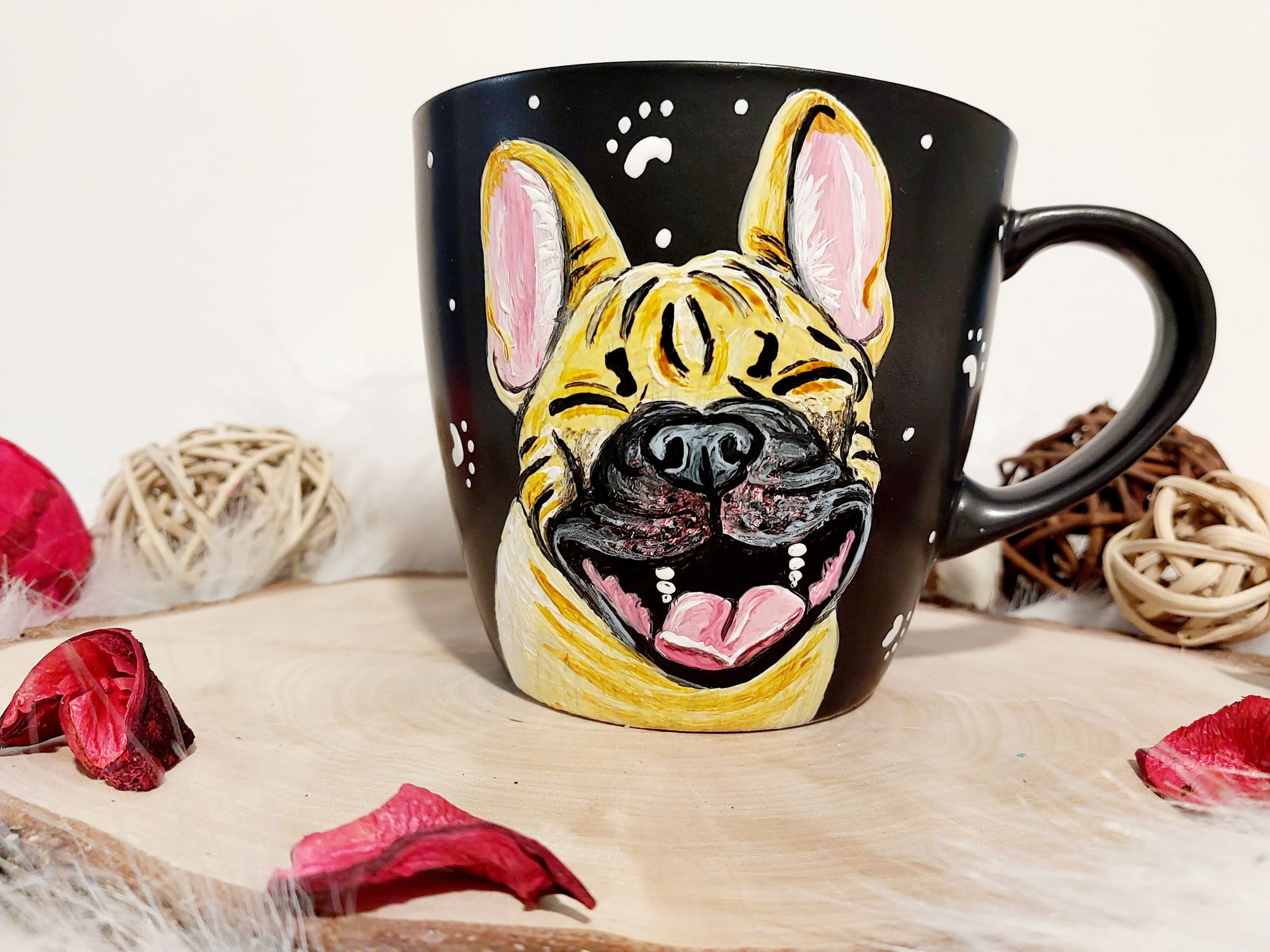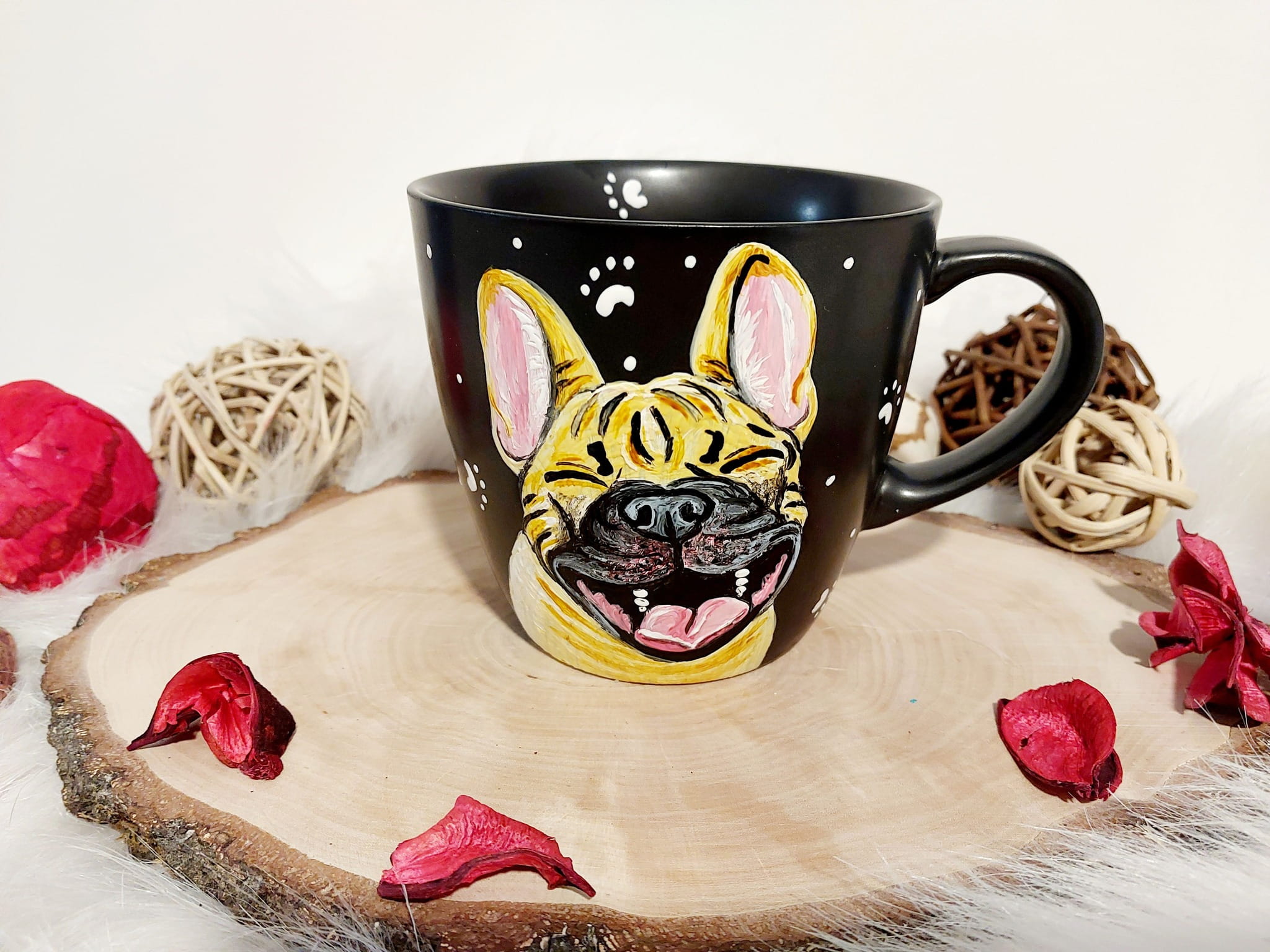 Wyjątkowy, ręcznie malowany kubek Buldożek francuski.
