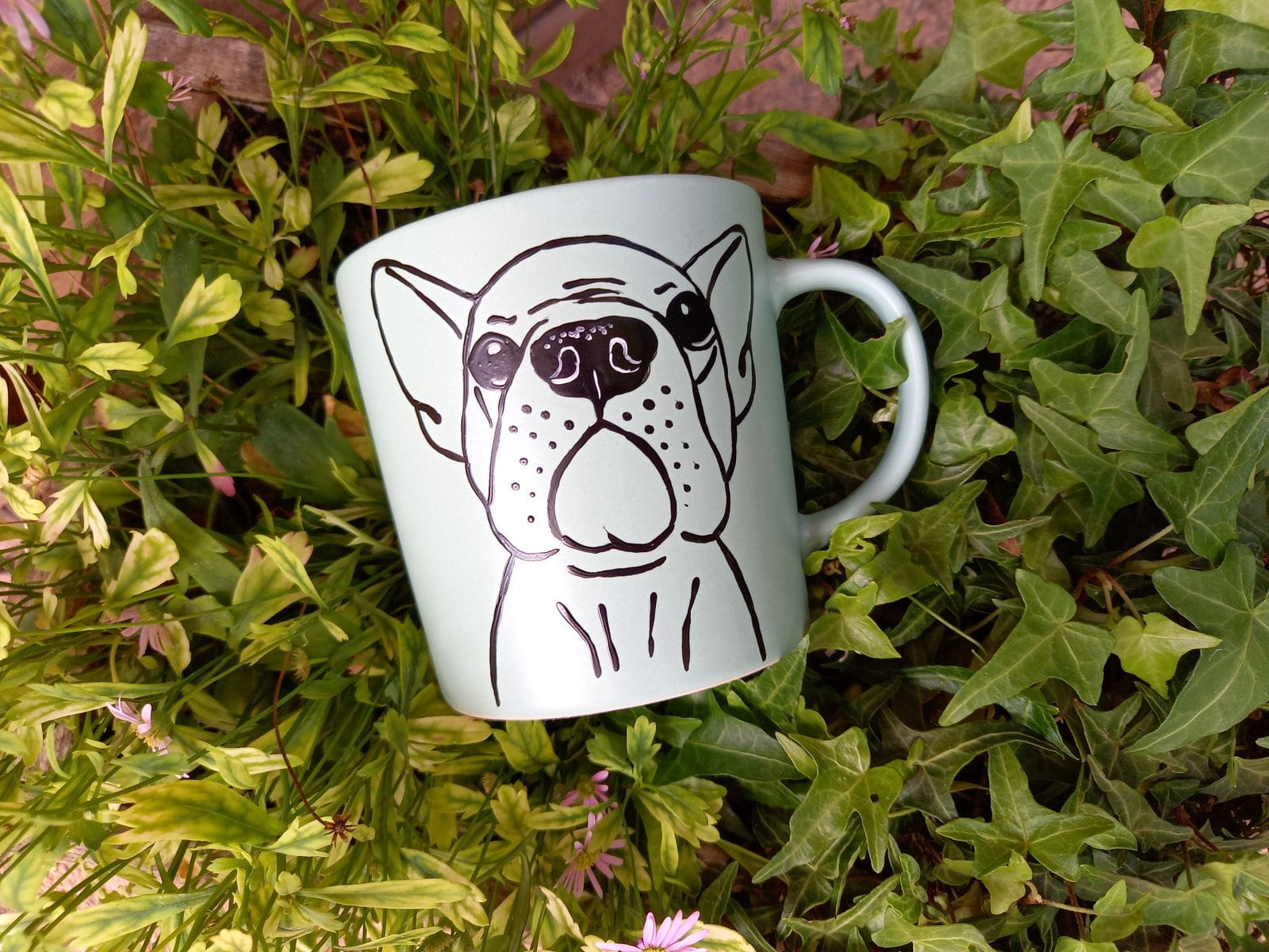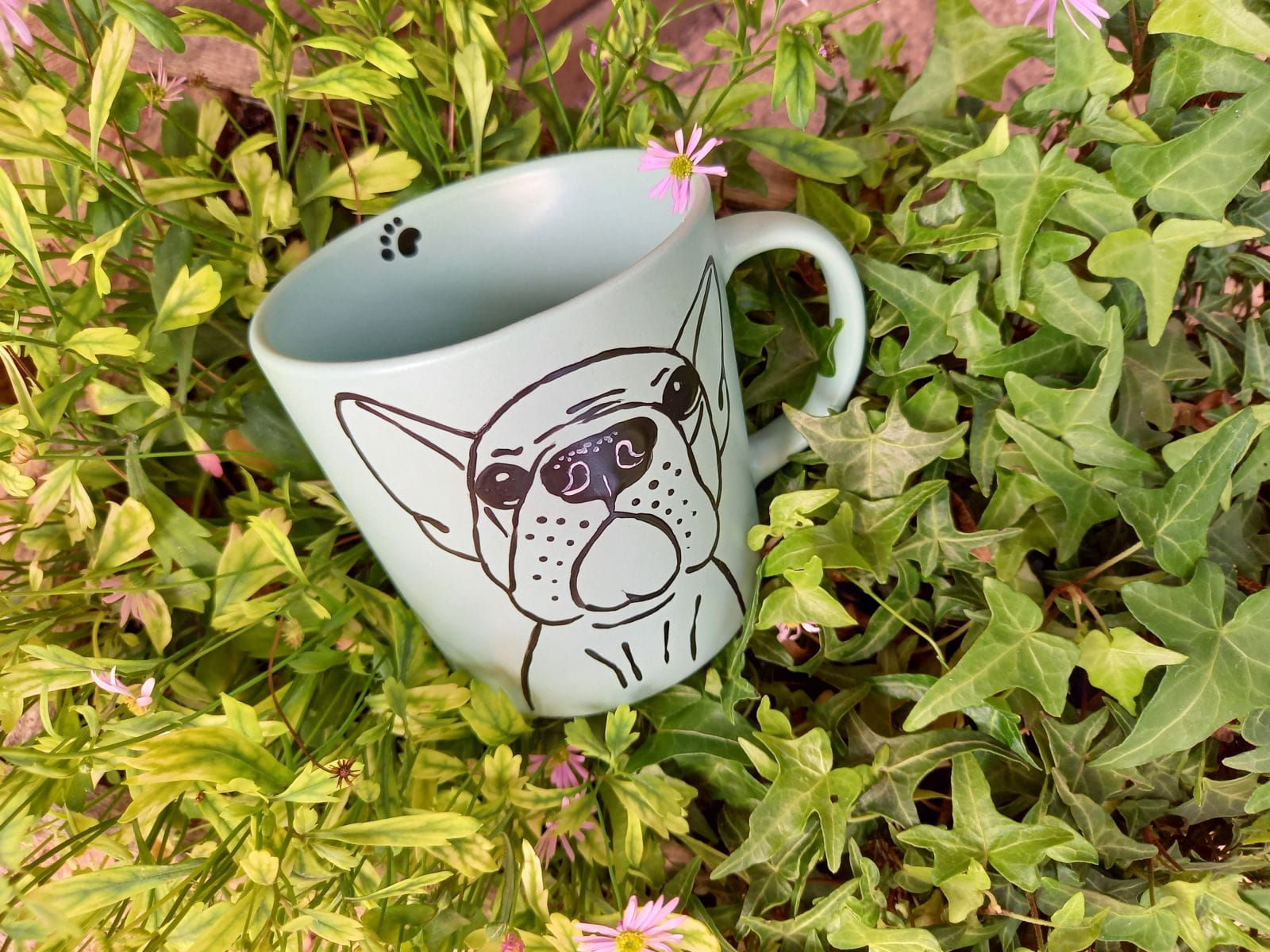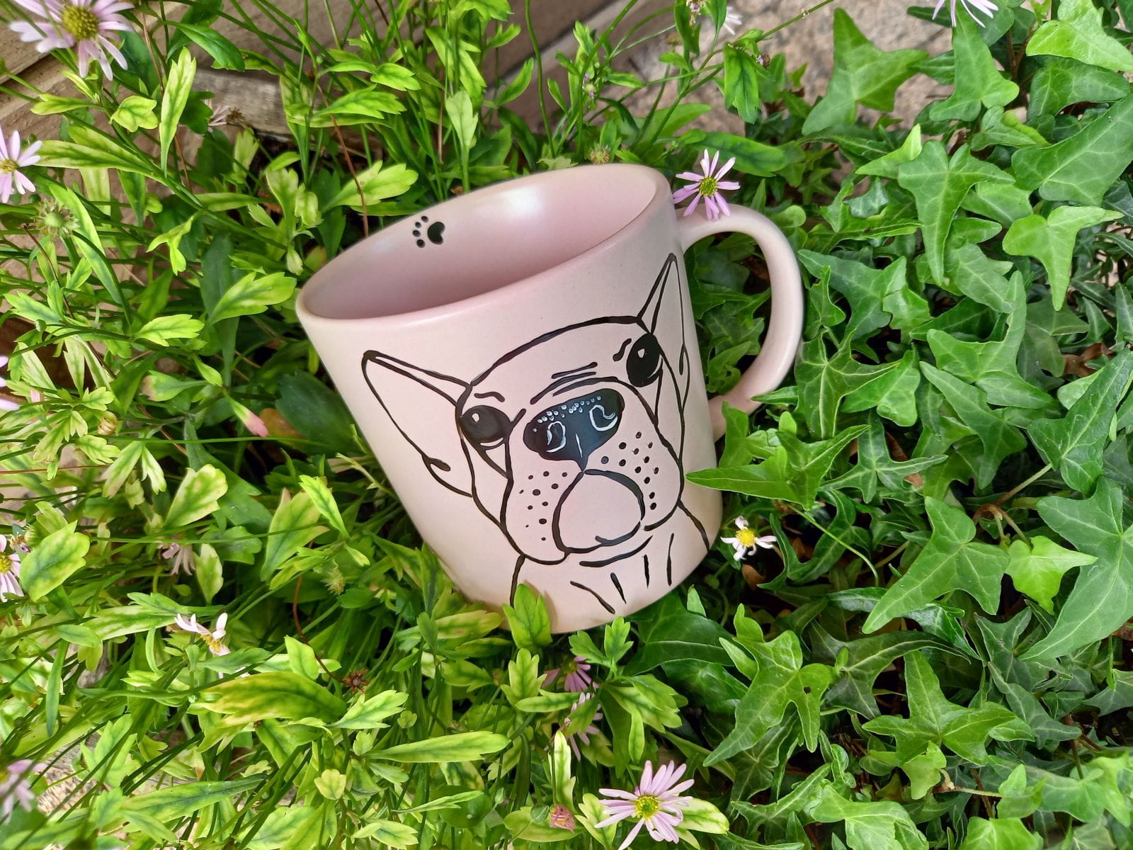 Wyjątkowy, ręcznie malowany kubek z autorskim motywem Buldożka francuskiego.