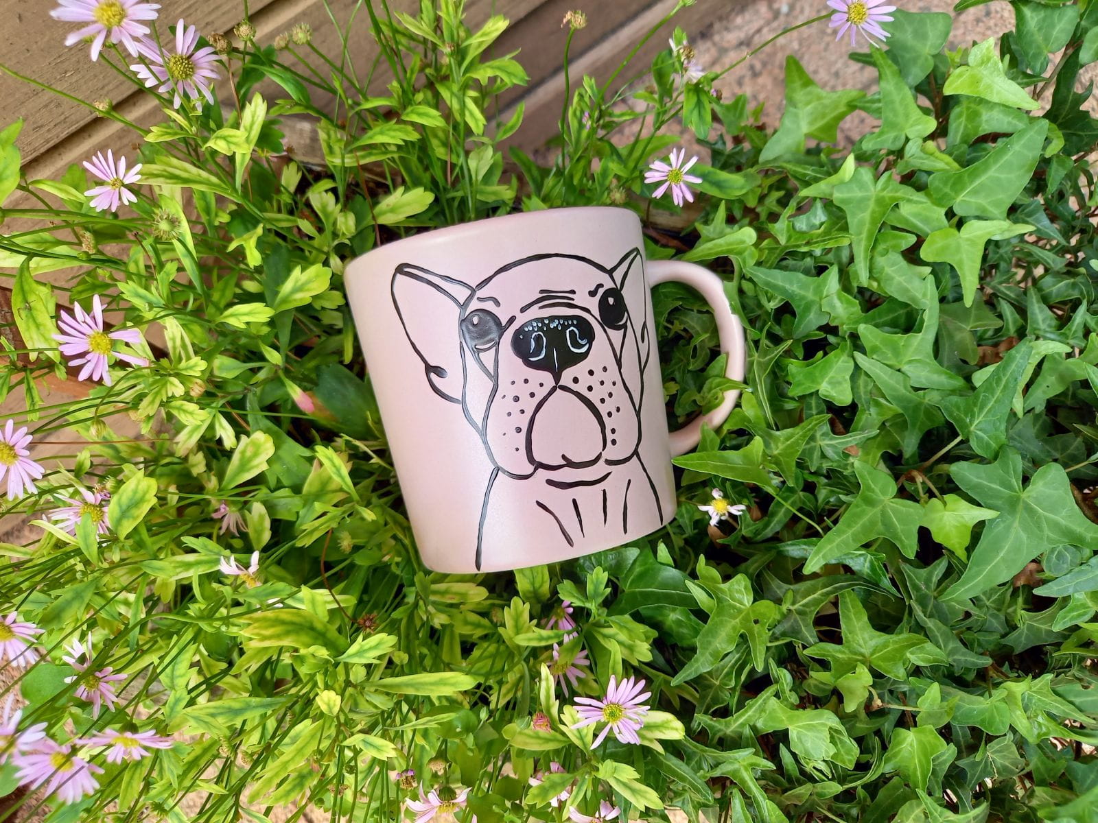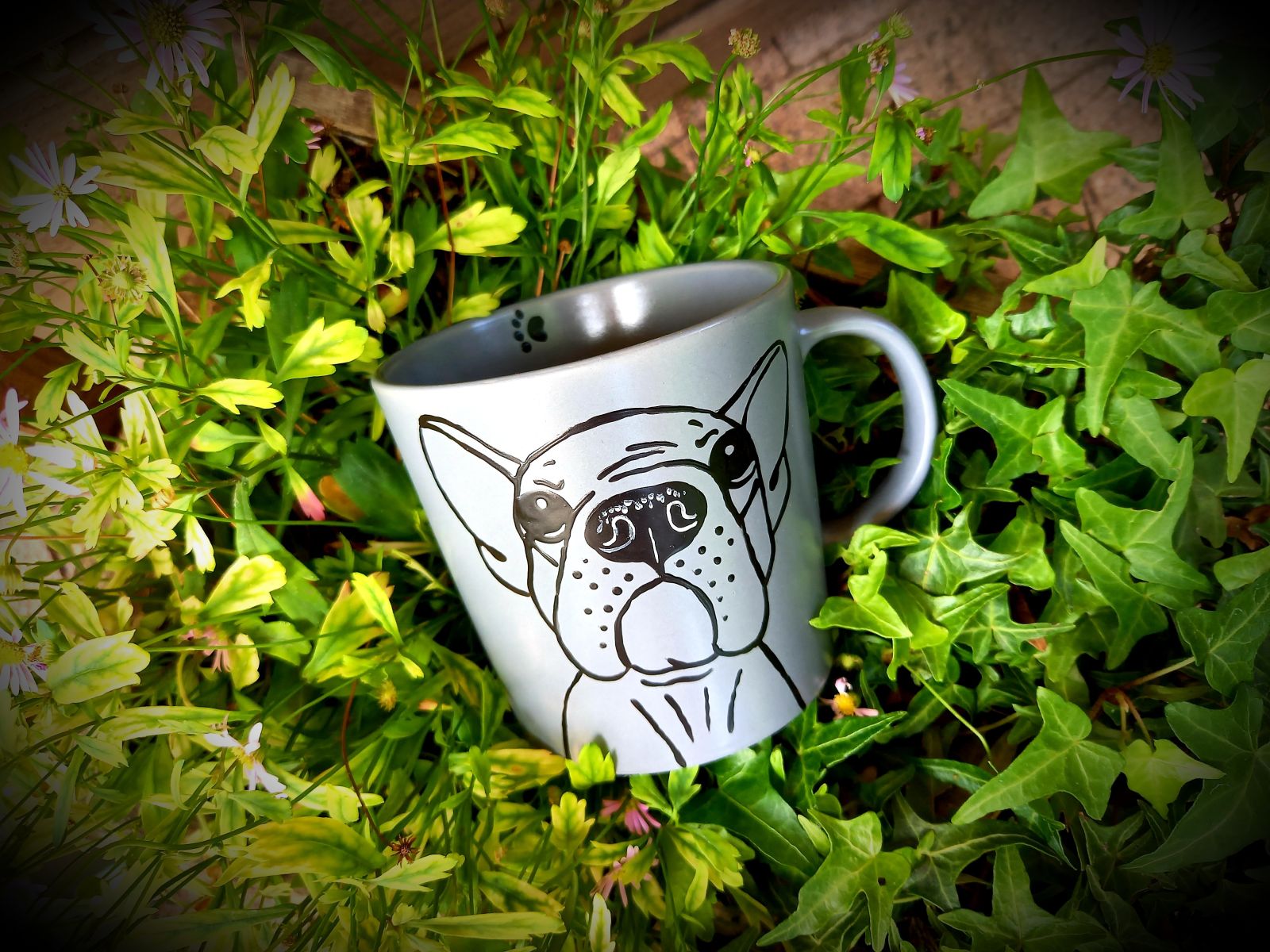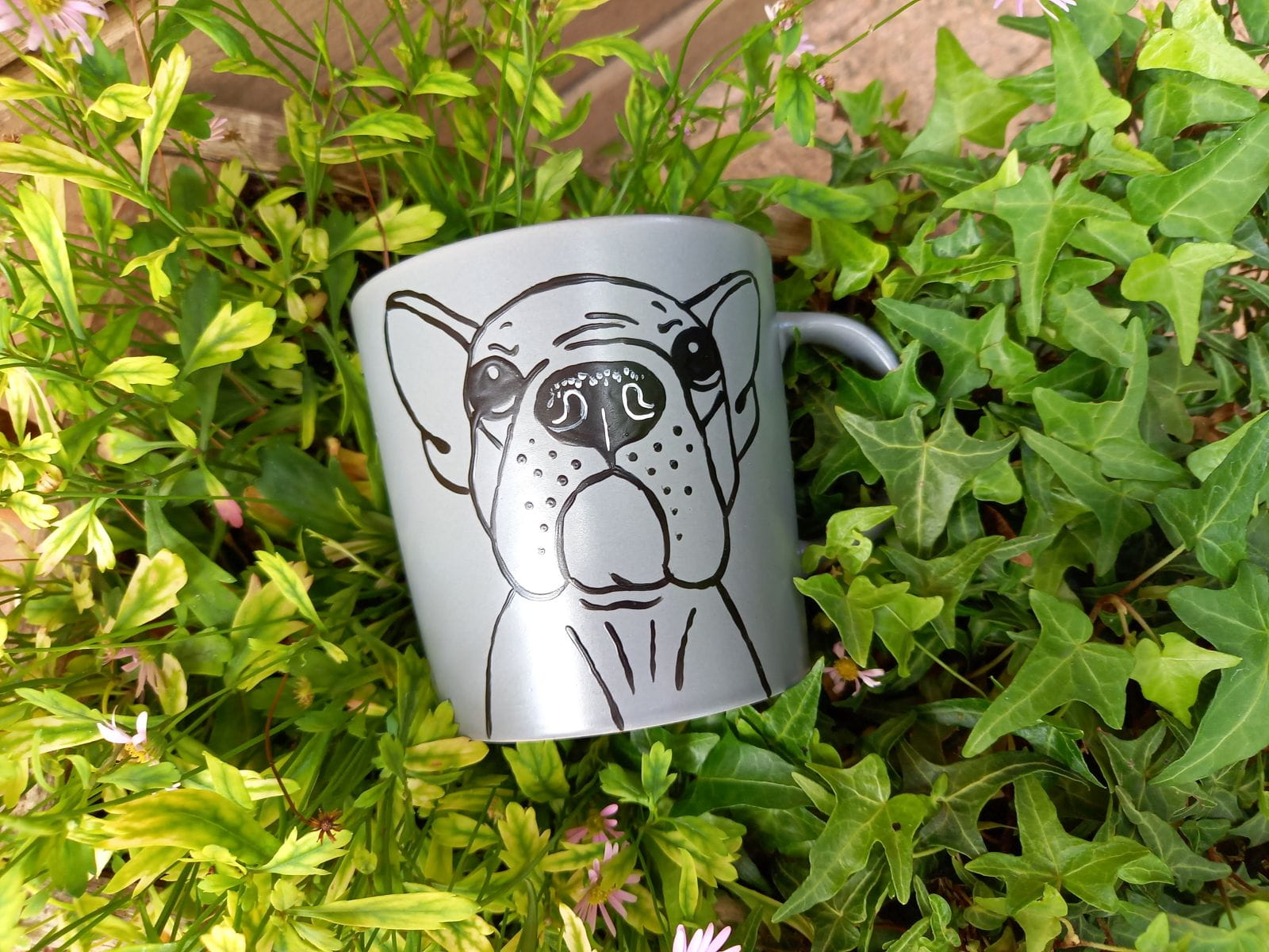 Wyjątkowy, ręcznie malowany kubek z autorskim motywem Buldożka francuskiego.