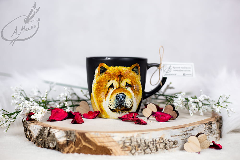Wyjątkowy, ręcznie malowany kubek Chow Chow.