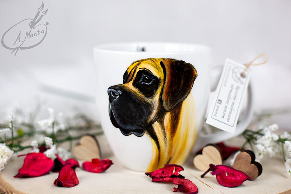Wyjątkowy, ręcznie malowany kubek Dog Niemiecki płowy.