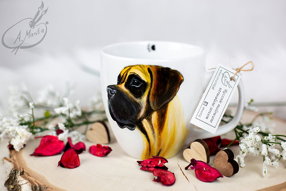 Kubek ręcznie malowany Dog Niemiecki płowy