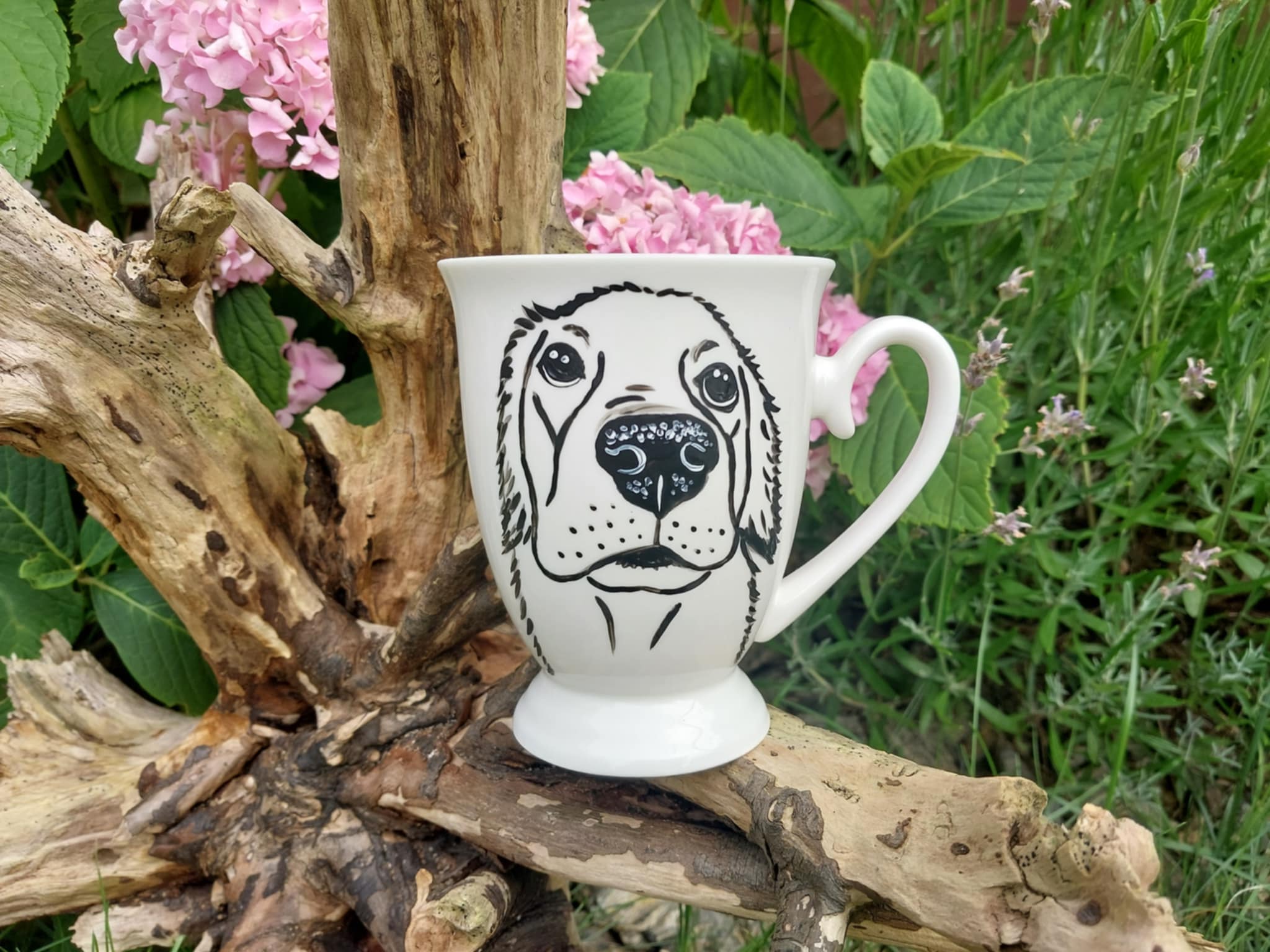 Wyjątkowy, ręcznie malowany kubek pies Golden Retriever.