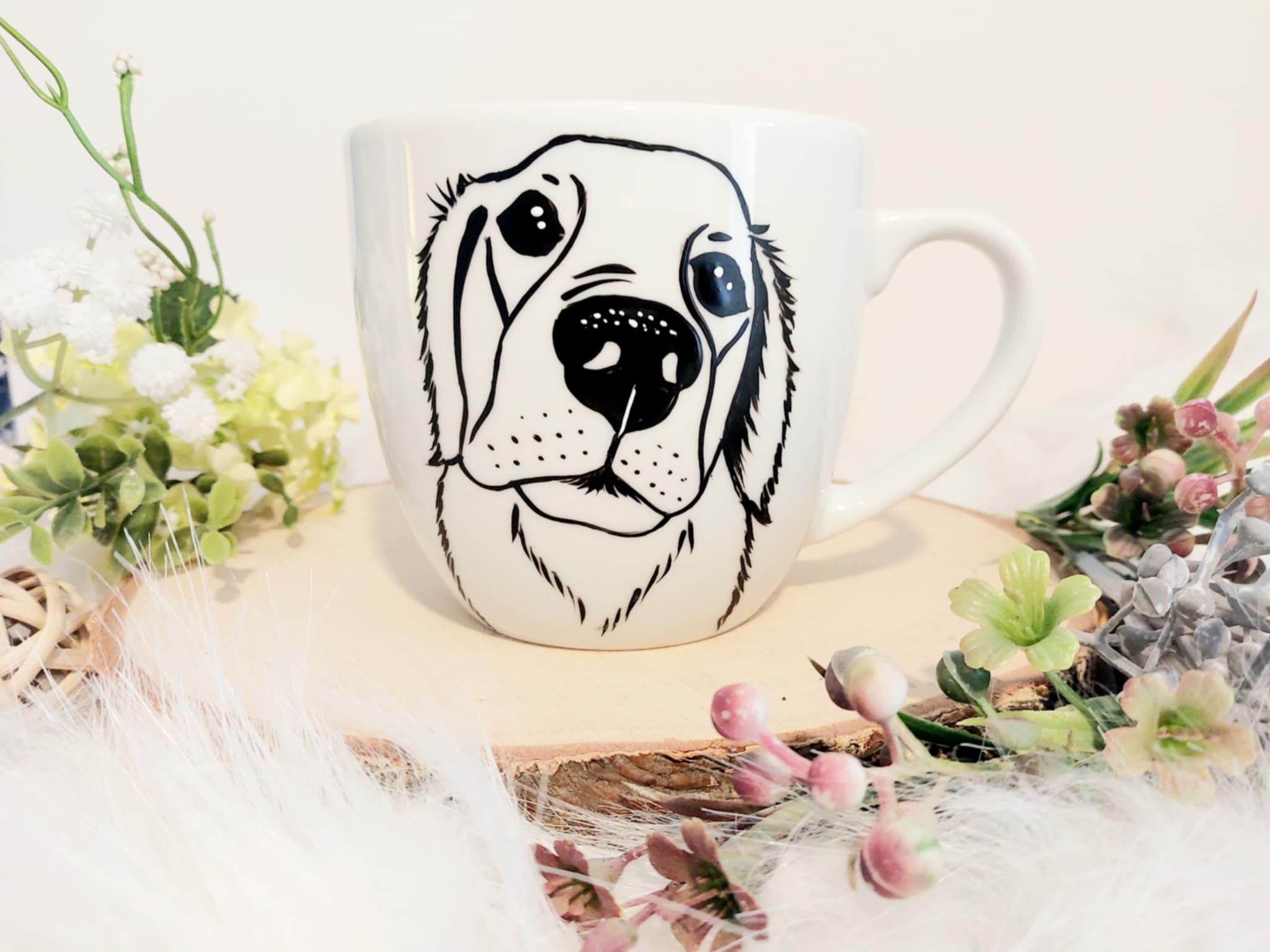 Wyjątkowy, ręcznie malowany kubek Golden Retriever.