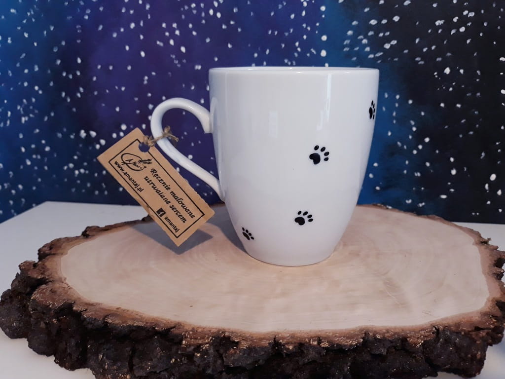 Kubek malowany specjalistycznymi farbami do ceramiki, absolutnie bezpiecznymi, wypalany w 160 stopniach, przez co malunek jest bardzo trwały. By cieszyć się nim dłuuugie lata, zaleca się mycie ręczne :)