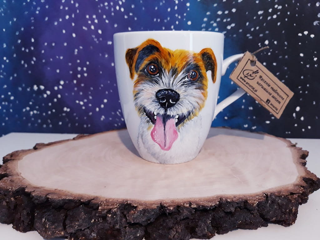 Wyjątkowy, ręcznie malowany kubek z autorskim motywem Jack Russel Terrier.