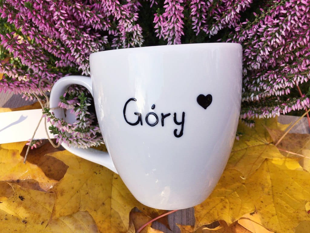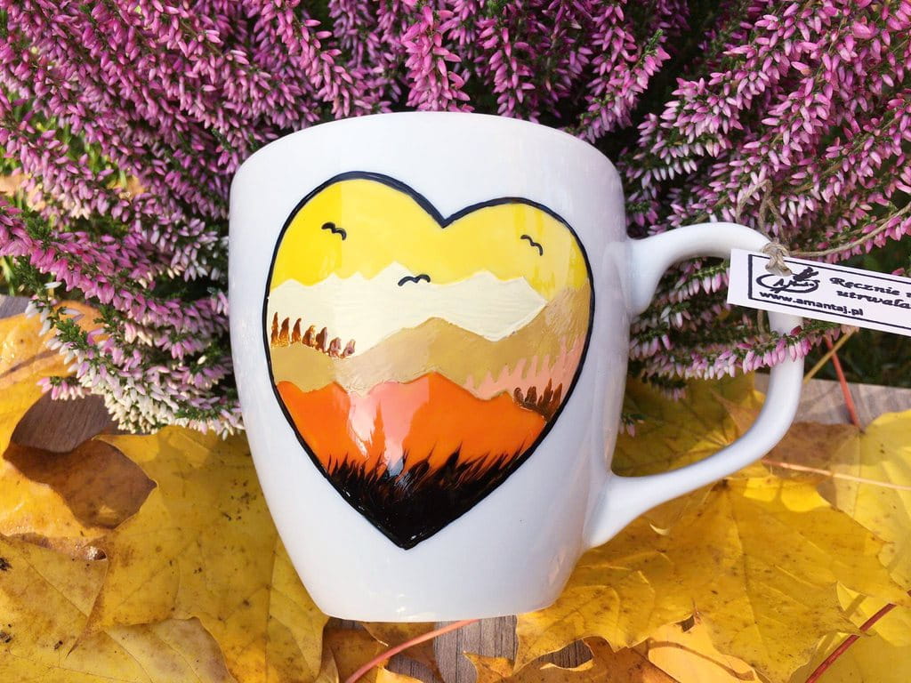 Wyjątkowy, ręcznie malowany kubek Kocham góry.