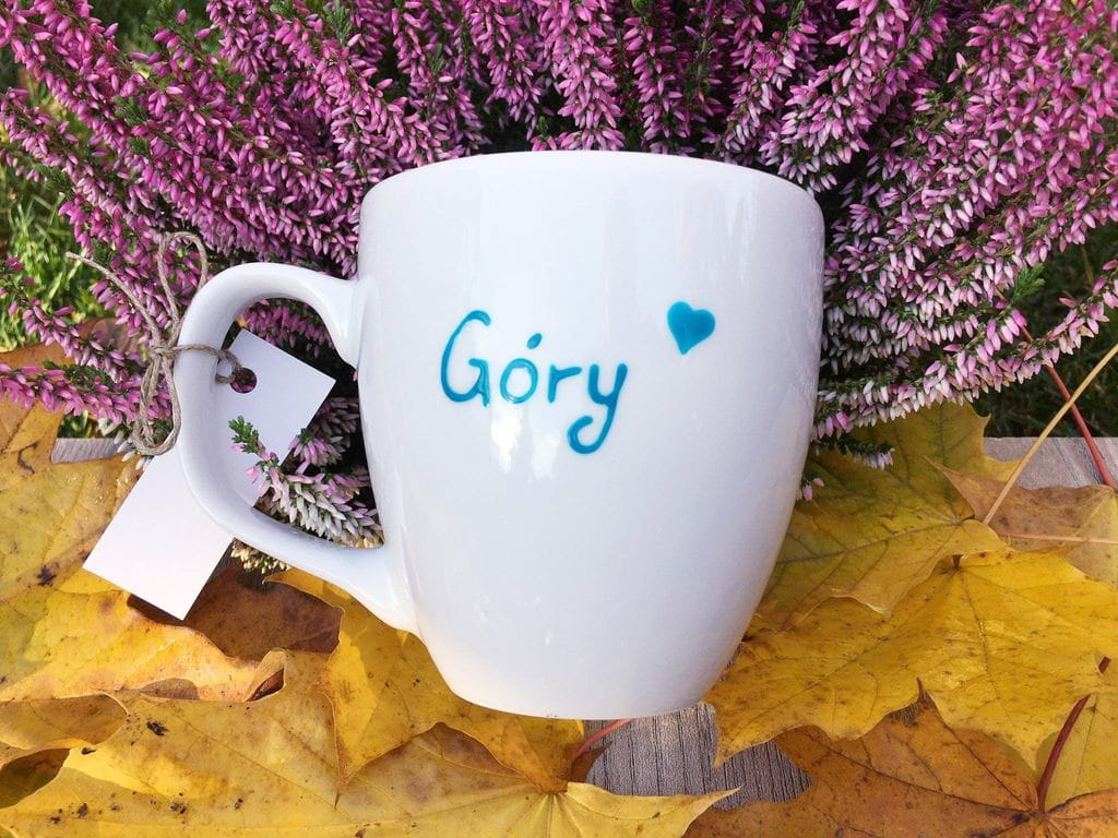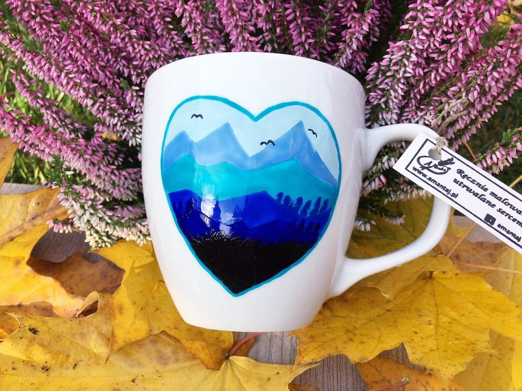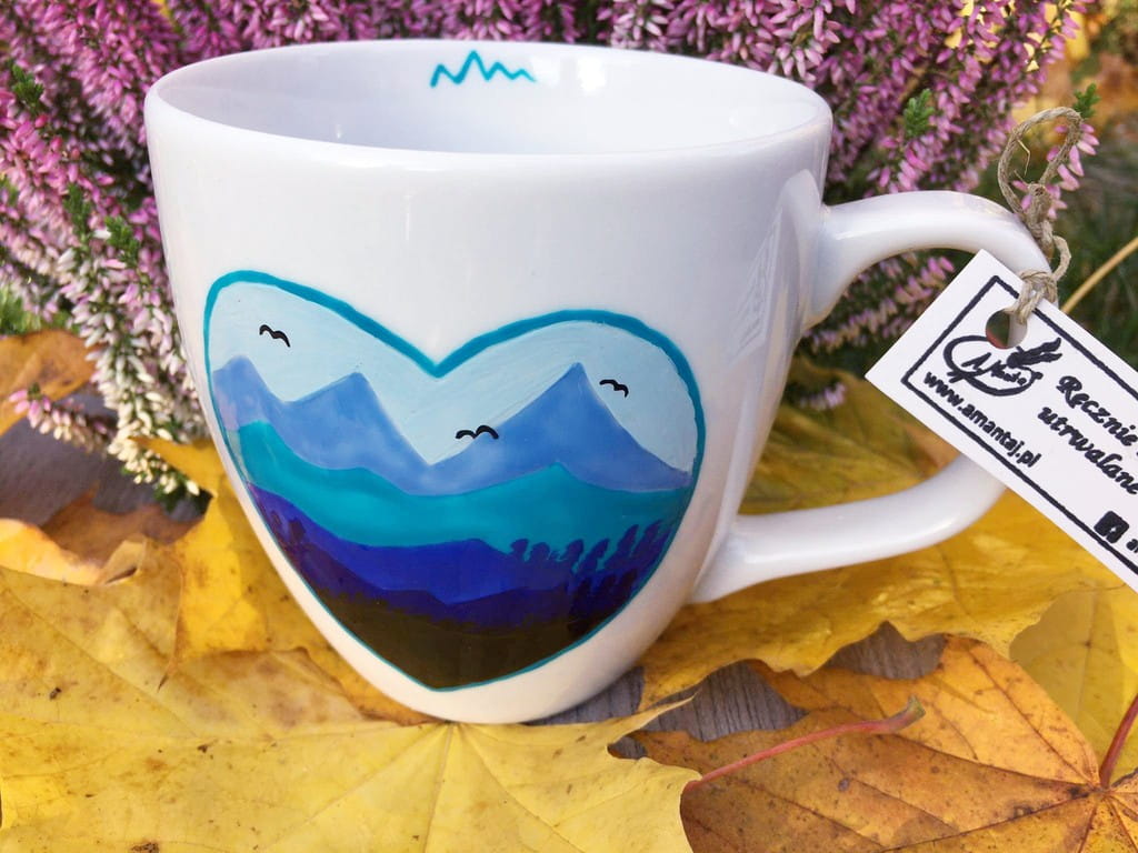 Wyjątkowy, ręcznie malowany kubek Kocham góry.