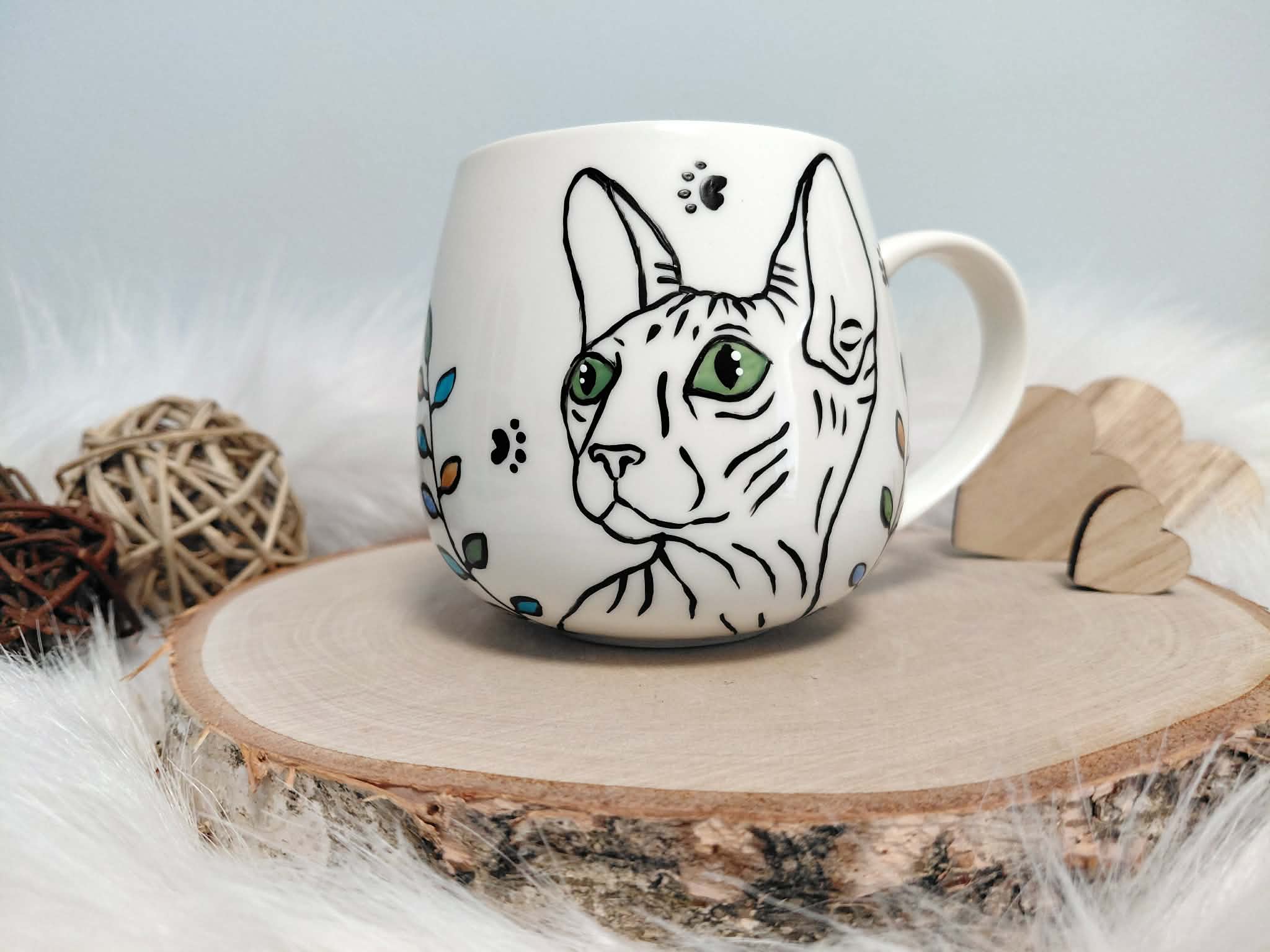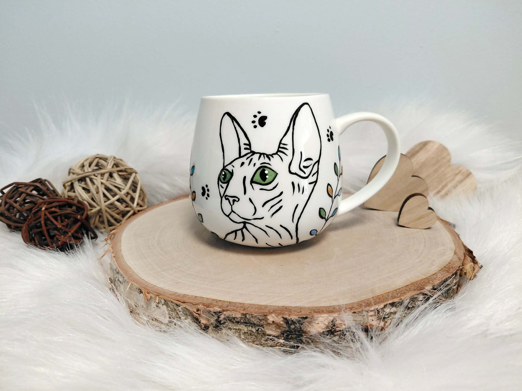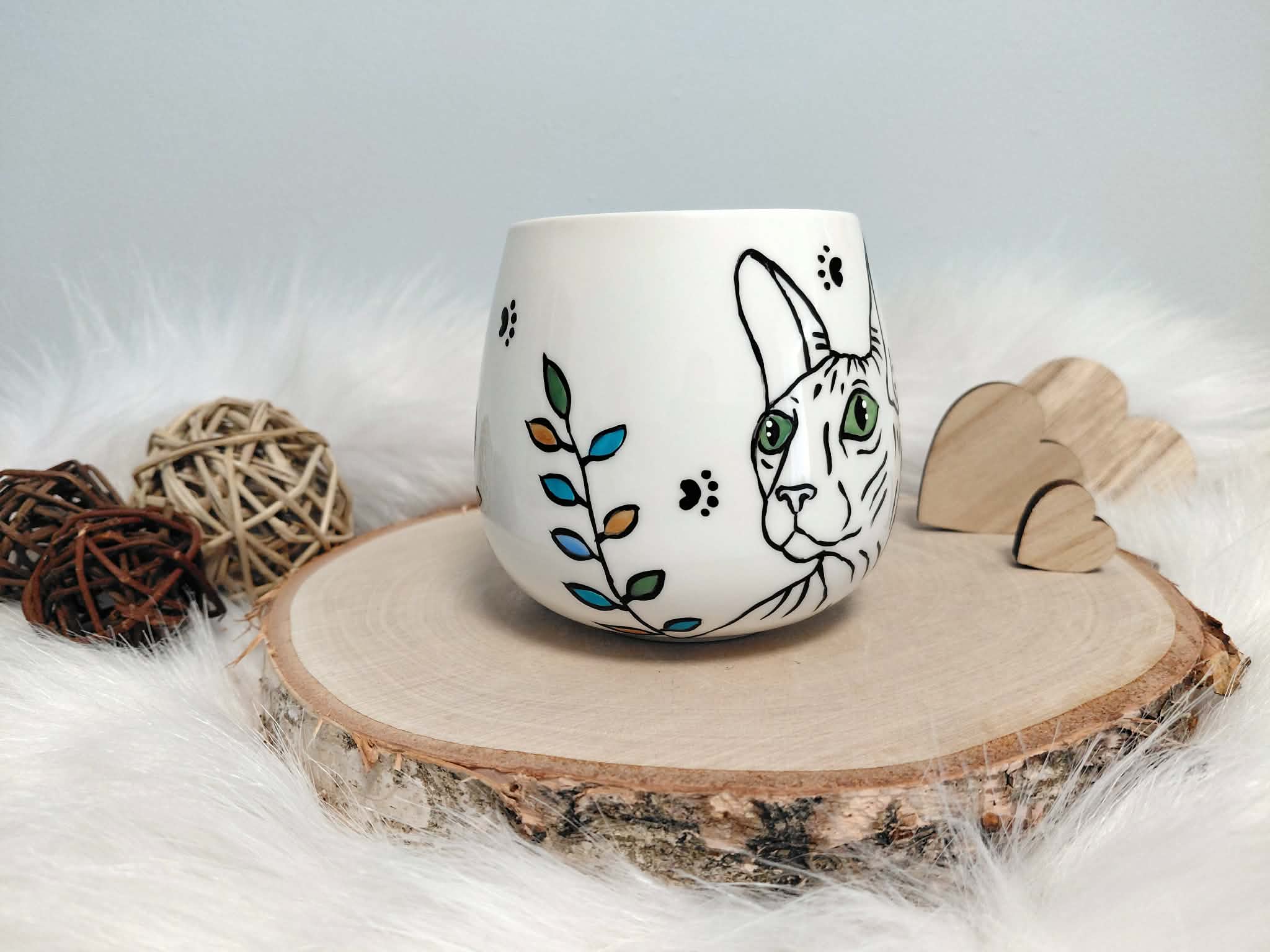 Kubek ręcznie malowany Kot rasy Sfinks 400 ml