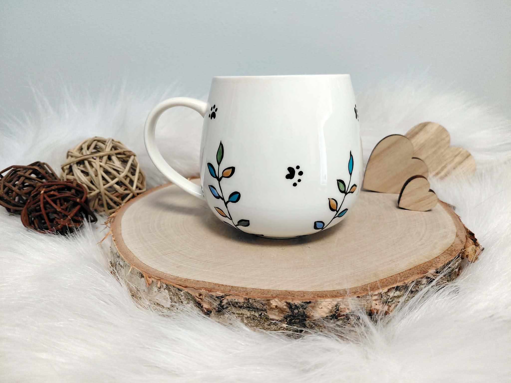 Kubek malowany specjalistycznymi farbami do ceramiki, absolutnie bezpiecznymi, wypalany w 160 stopniach, przez co malunek jest bardzo trwały.
