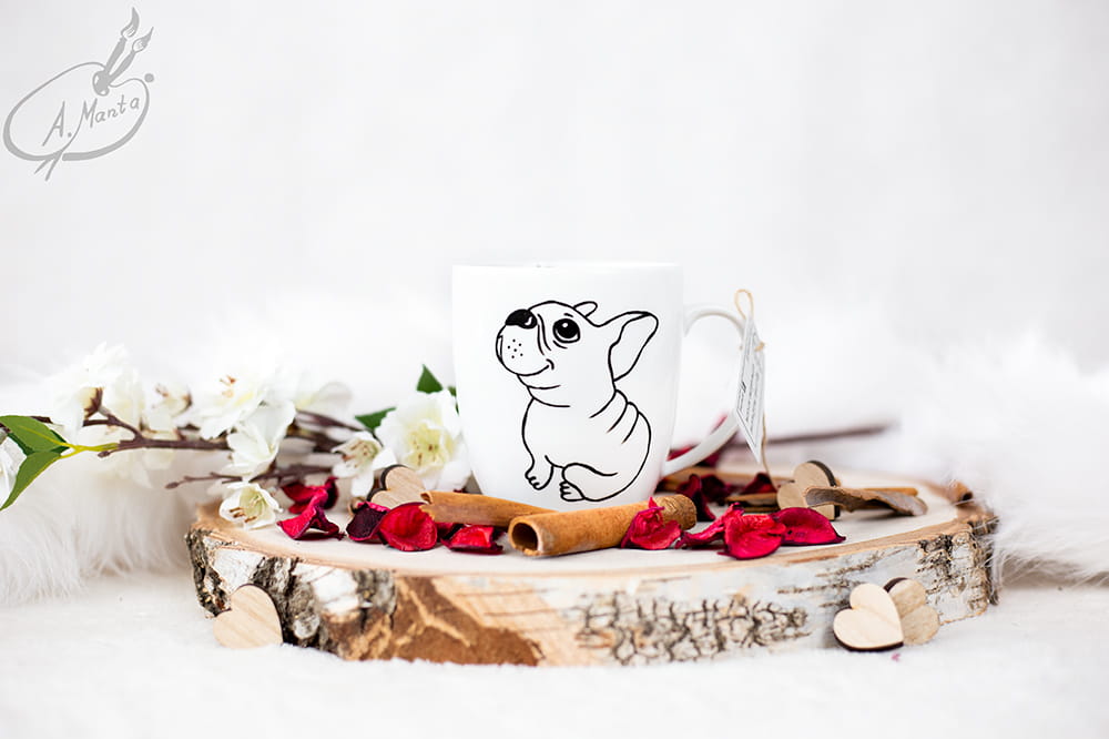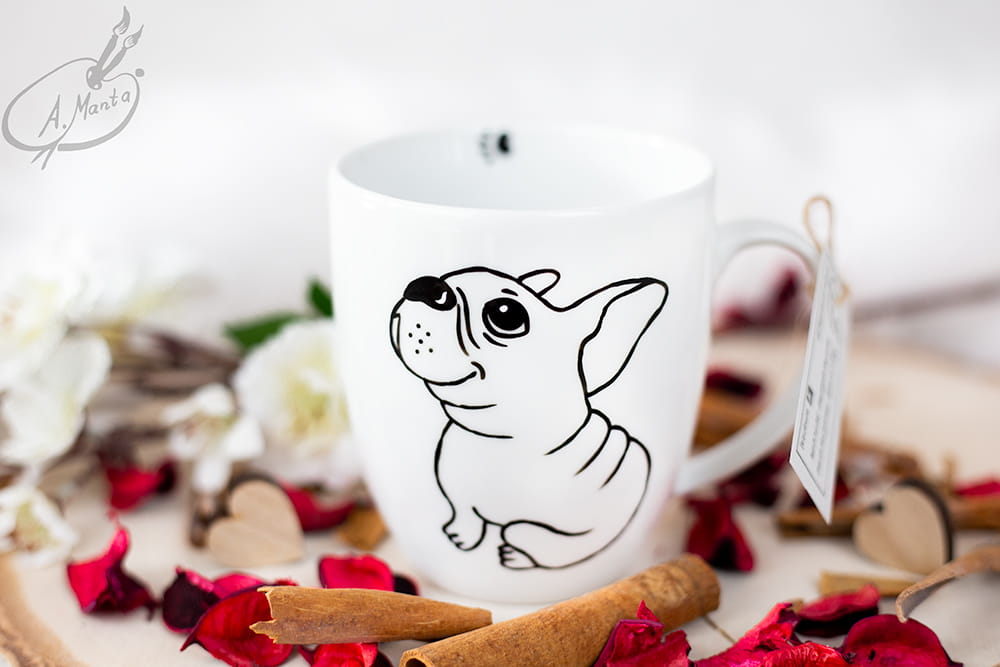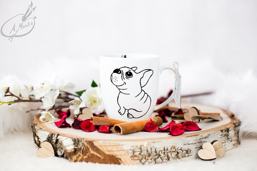 Wyjątkowy, ręcznie malowany kubek Buldog francuski.