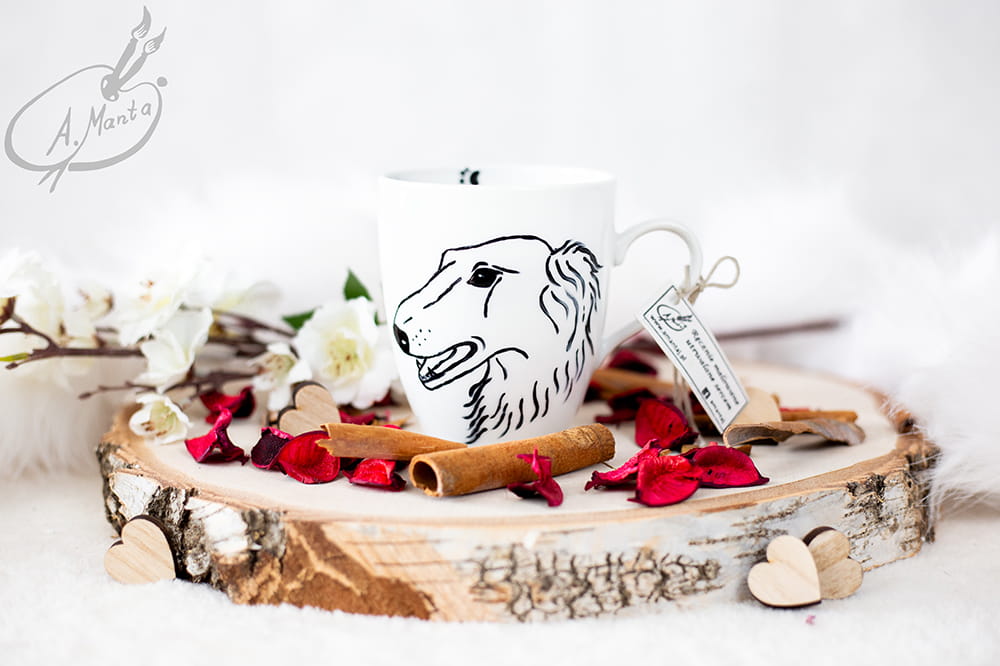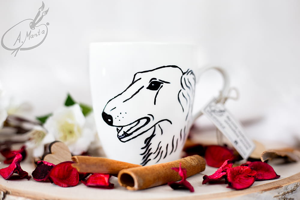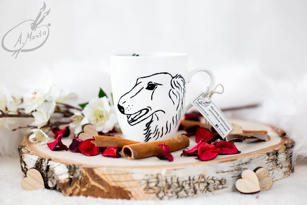 Wyjątkowy, ręcznie malowany kubek Chart rosyjski Borzoj.