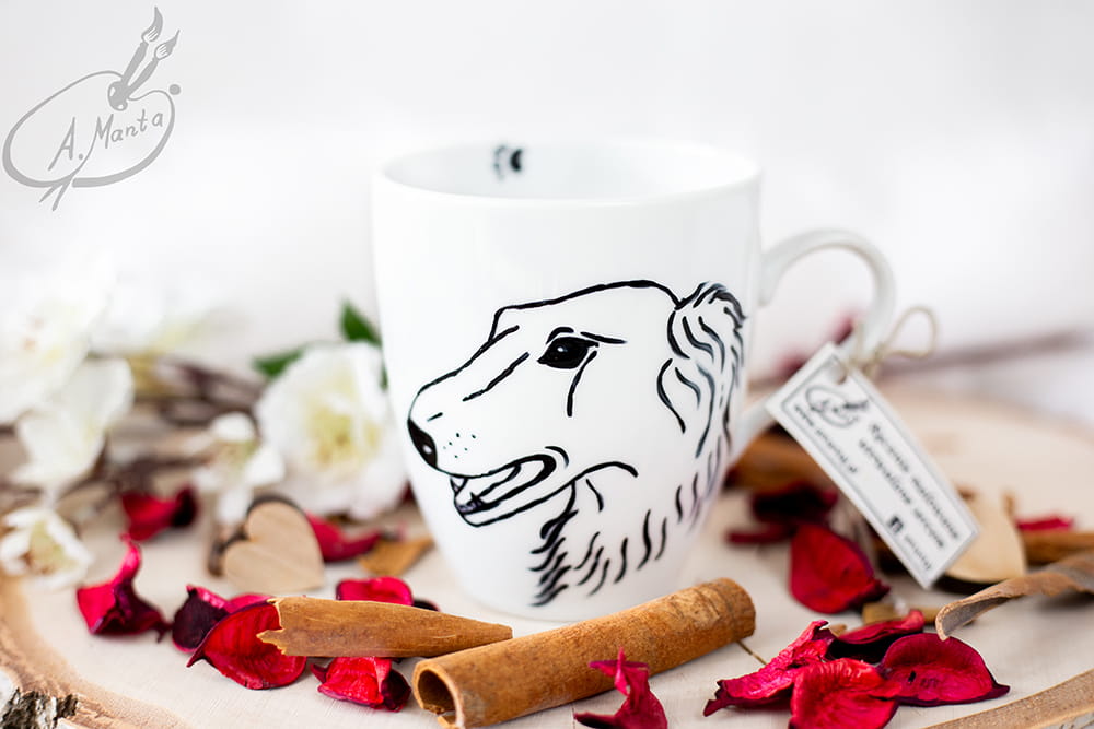 Kubek ręcznie malowany Pies Chart rosyjski Borzoj