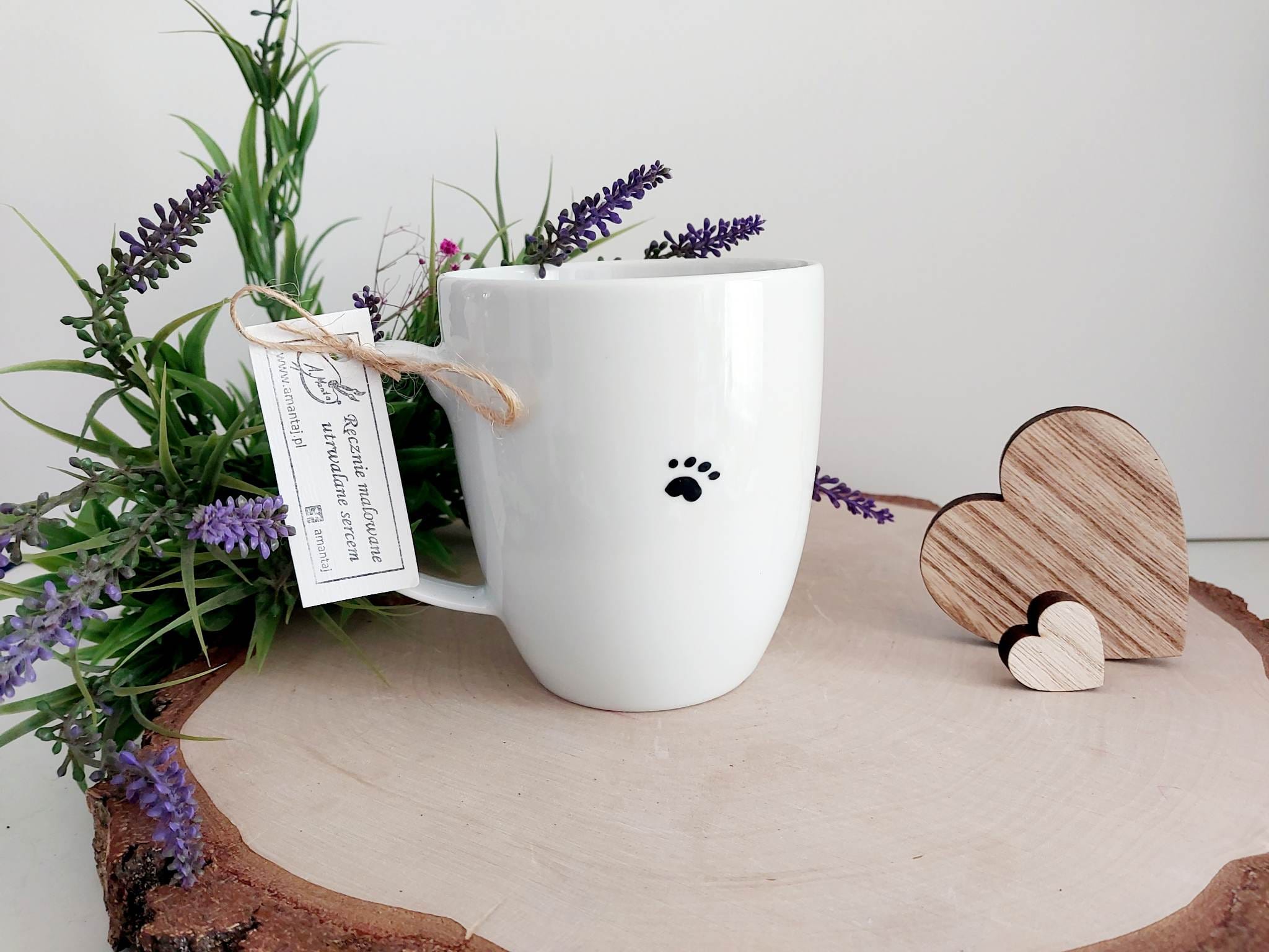 Kubek malowany specjalistycznymi farbami do ceramiki, absolutnie bezpiecznymi, wypalany w 160 stopniach, przez co malunek jest bardzo trwały. By cieszyć się nim dłuuugie lata, zaleca się mycie ręczne :)