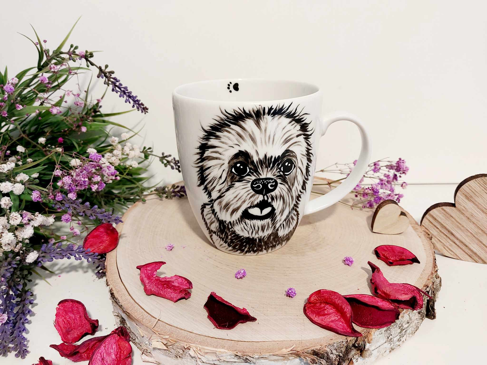 Wyjątkowy, ręcznie malowany kubek Dandie Dinmont Terrier.
