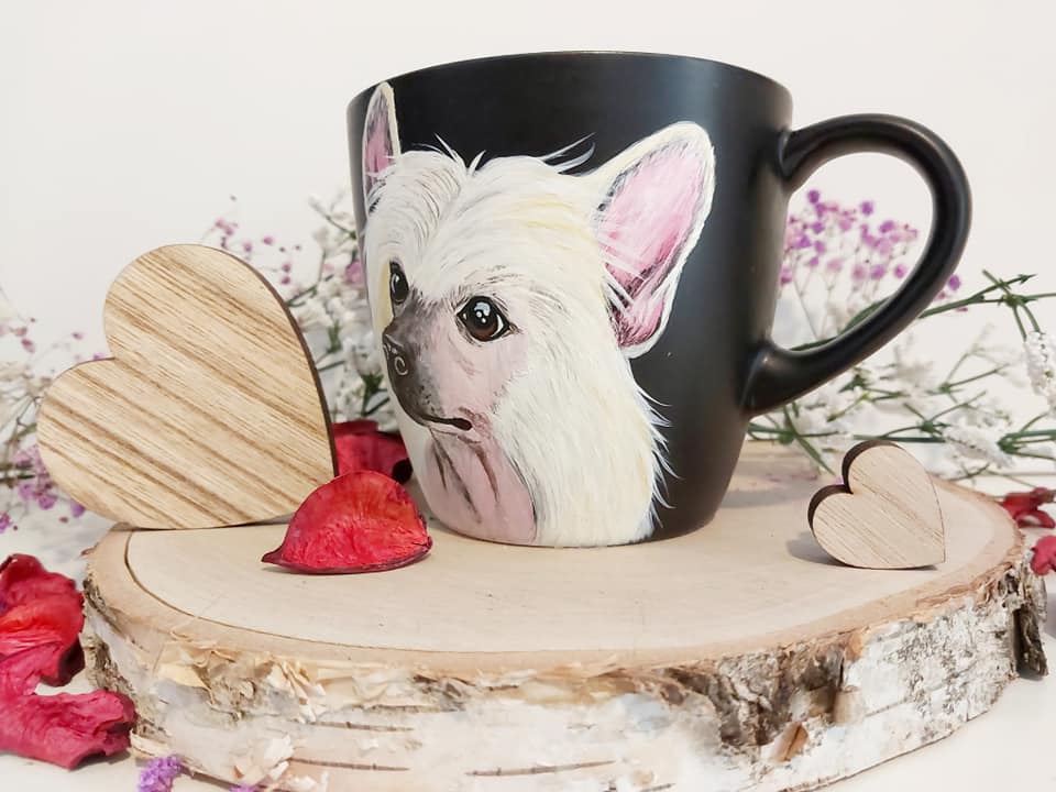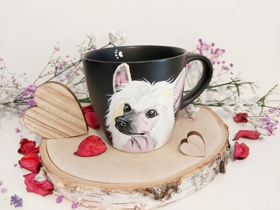 Kubek ręcznie malowany Pies Grzywacz Chiński