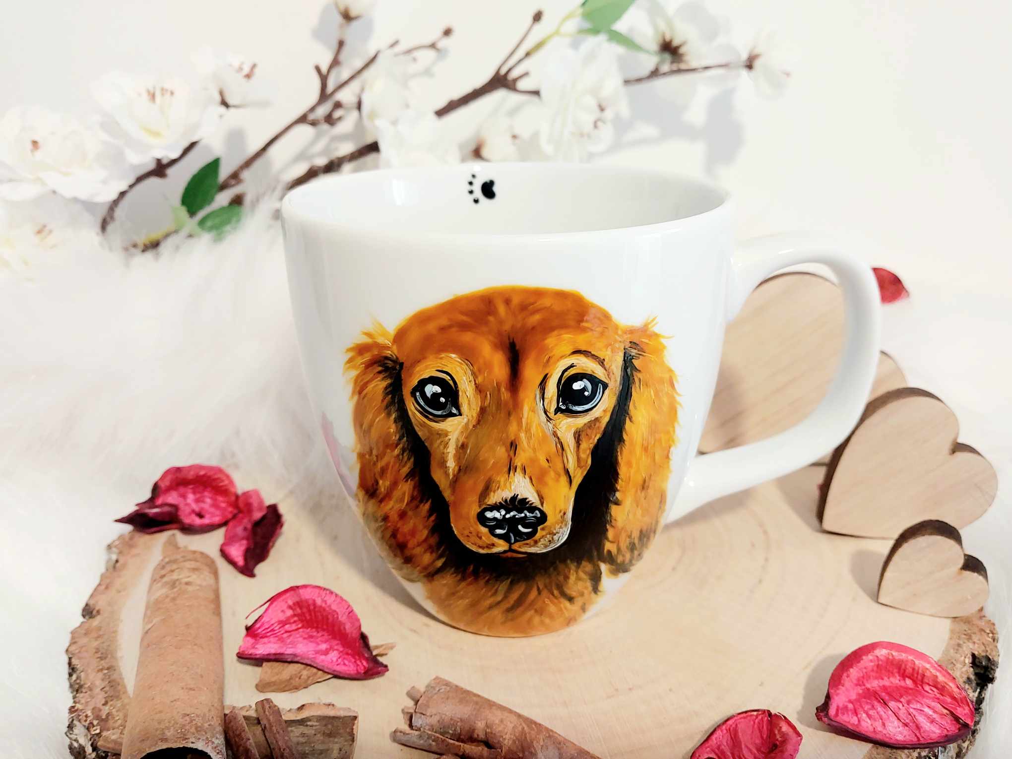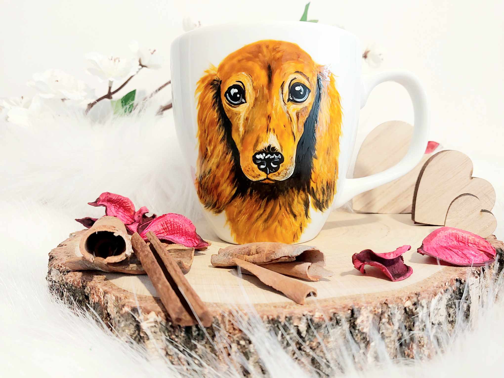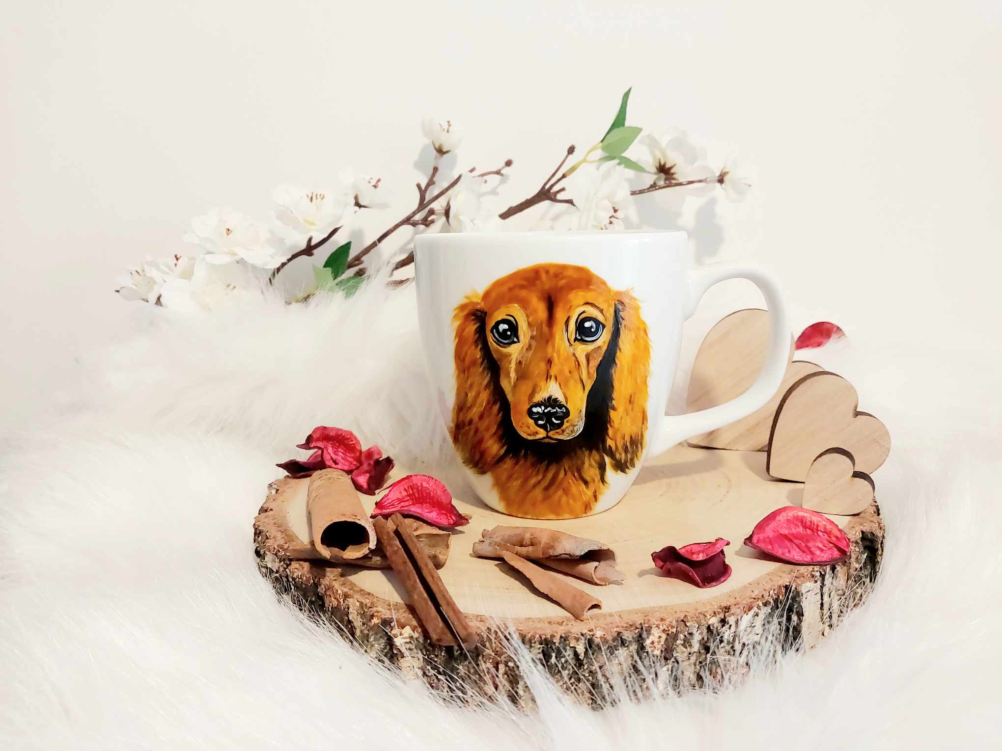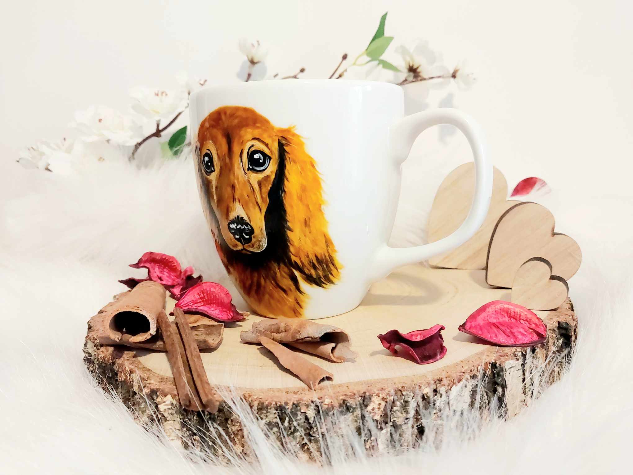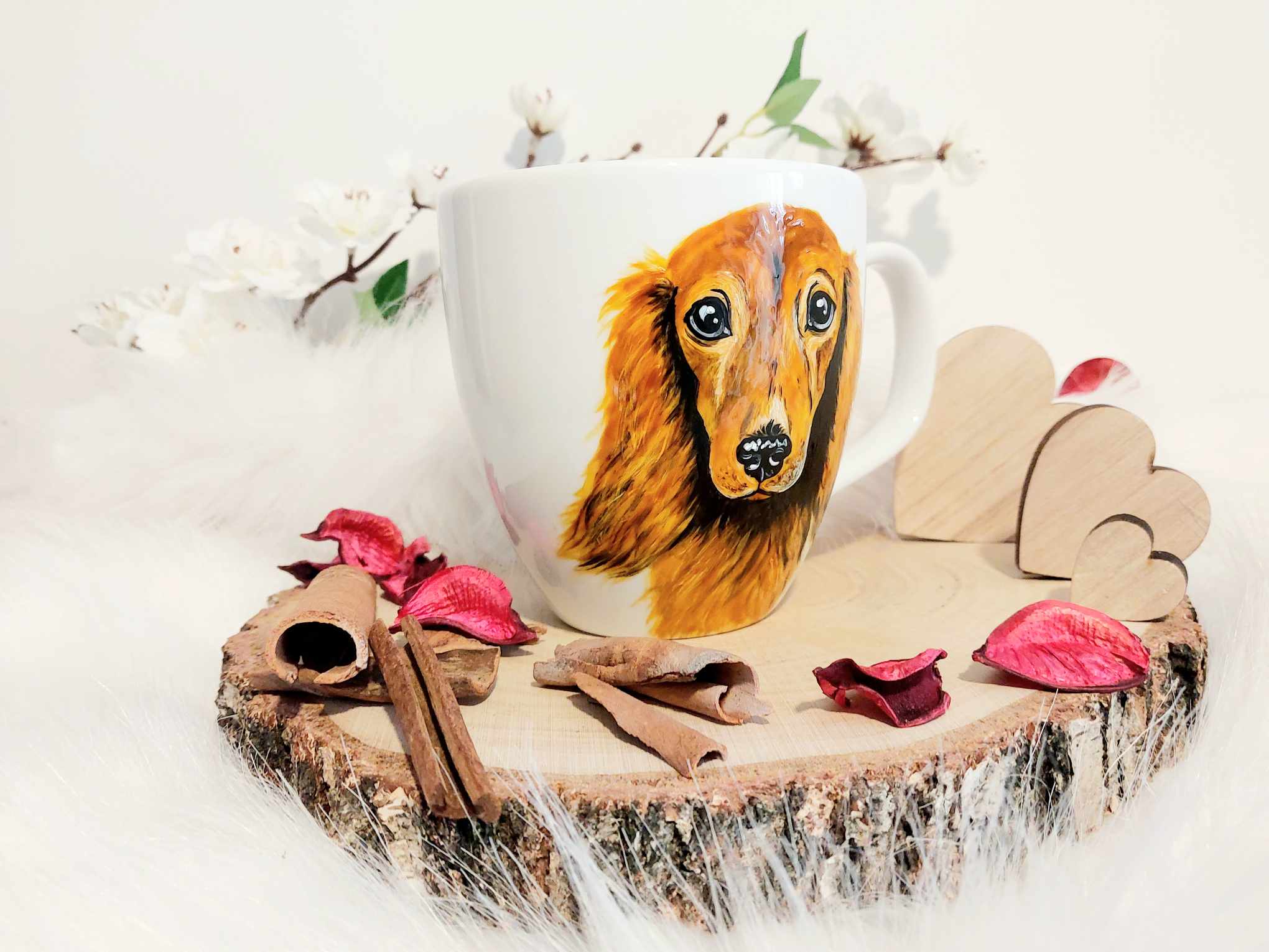Wyjątkowy, ręcznie malowany kubek Jamnik długowłosy.