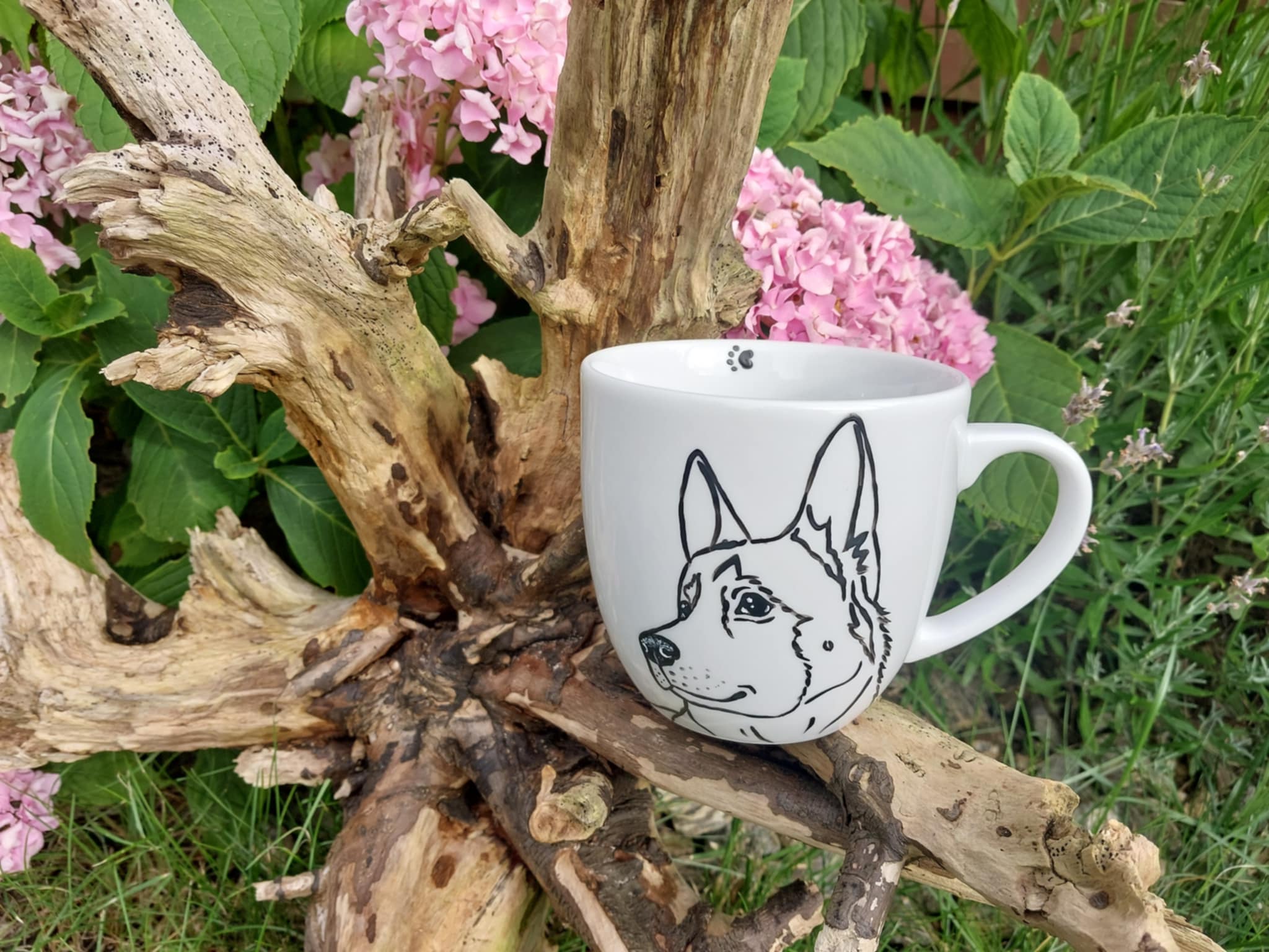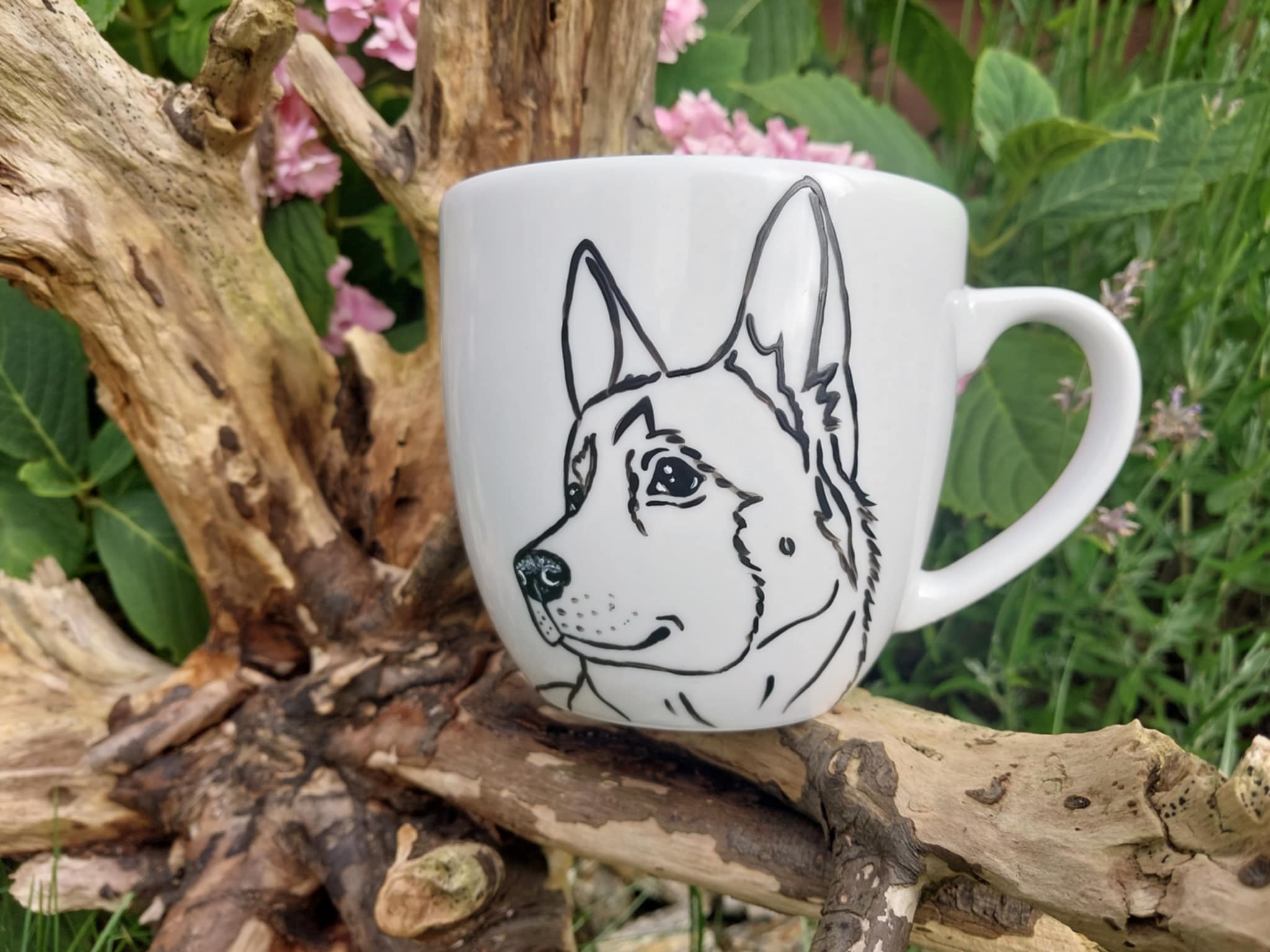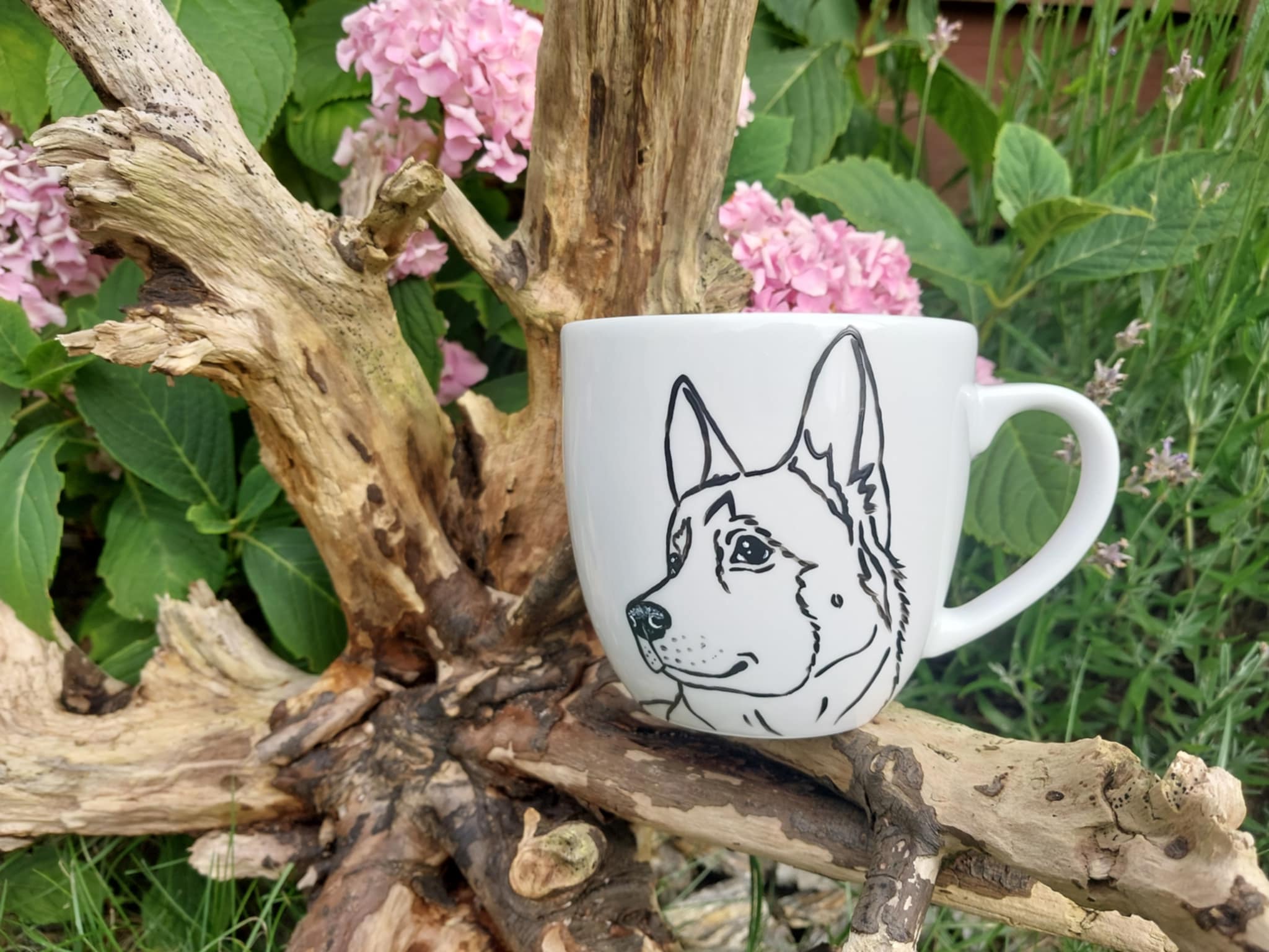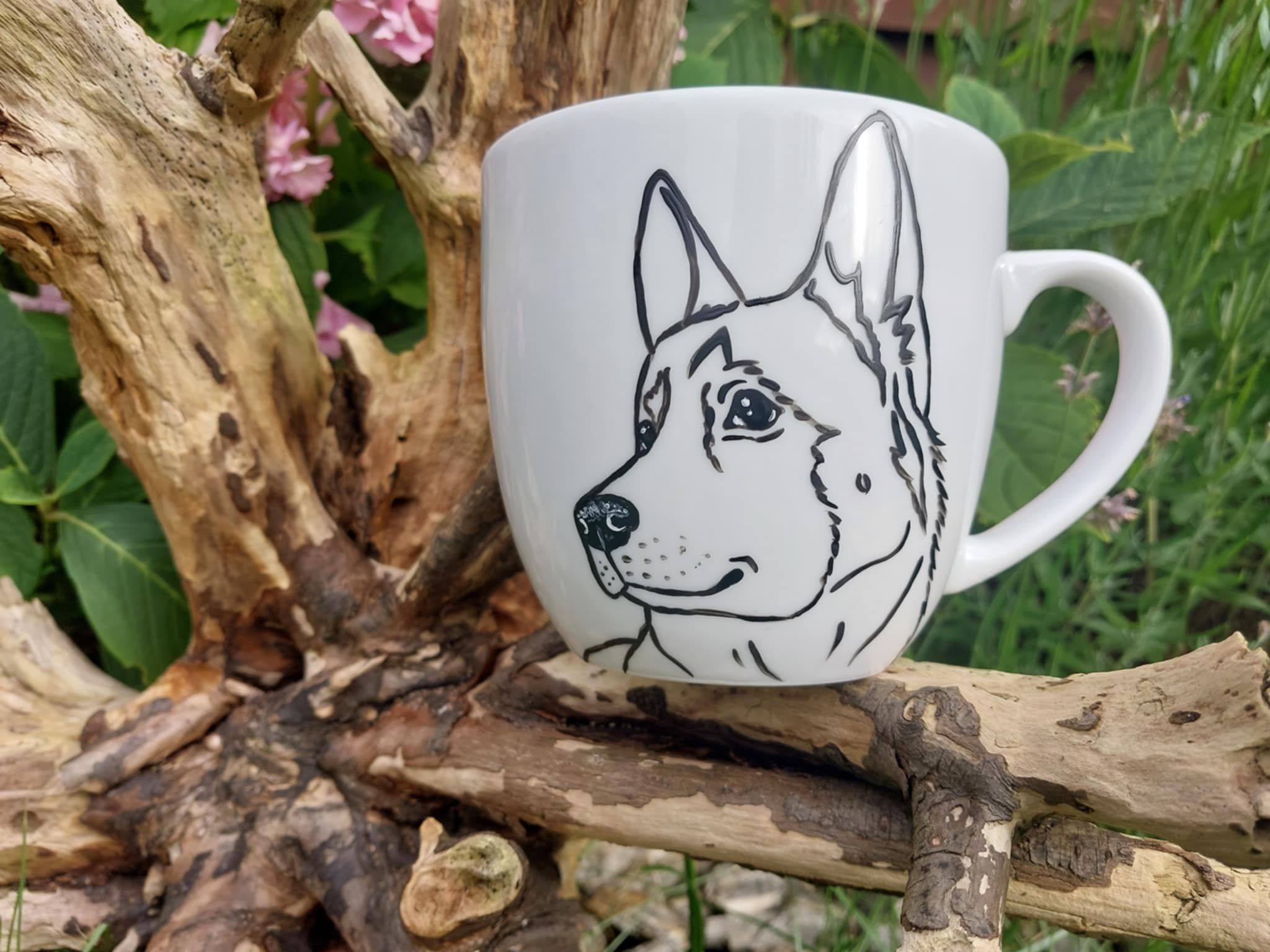 Wyjątkowy, ręcznie malowany kubek Pies Owczarek niemiecki.