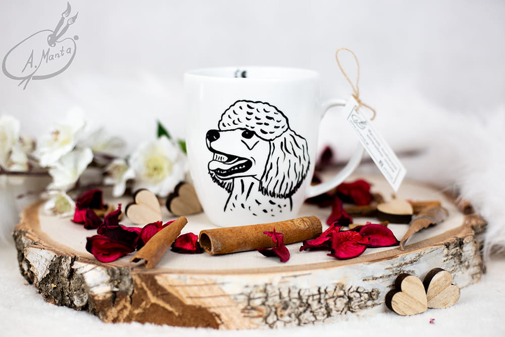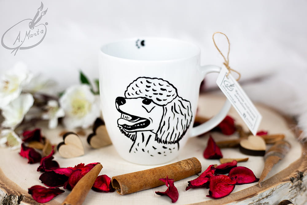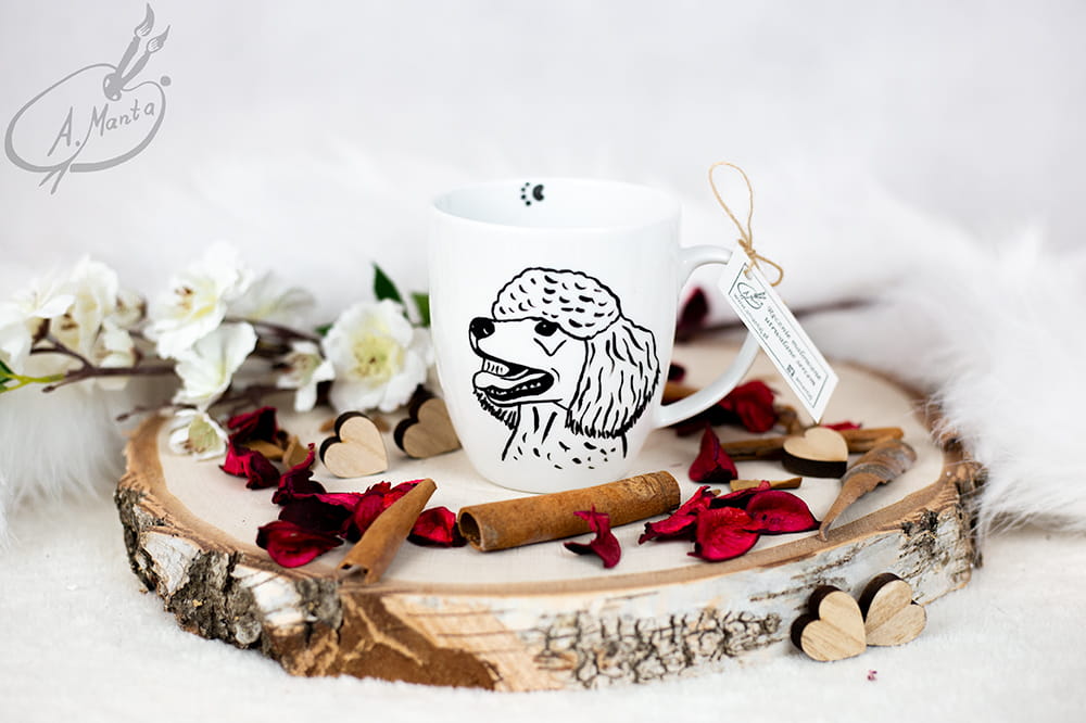 Wyjątkowy, ręcznie malowany kubek Pudel