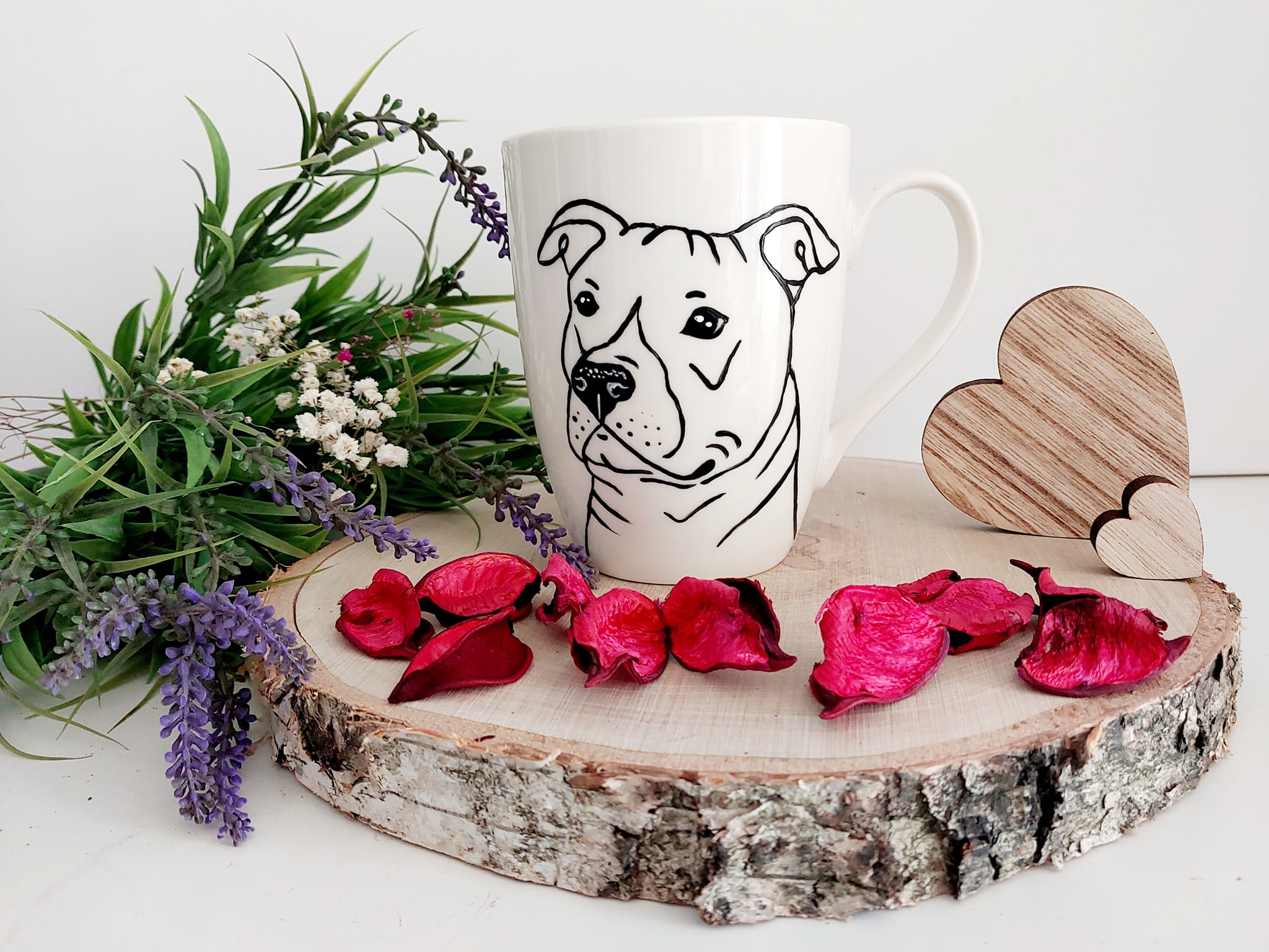 Wyjątkowy, ręcznie malowany kubek Amstaff.