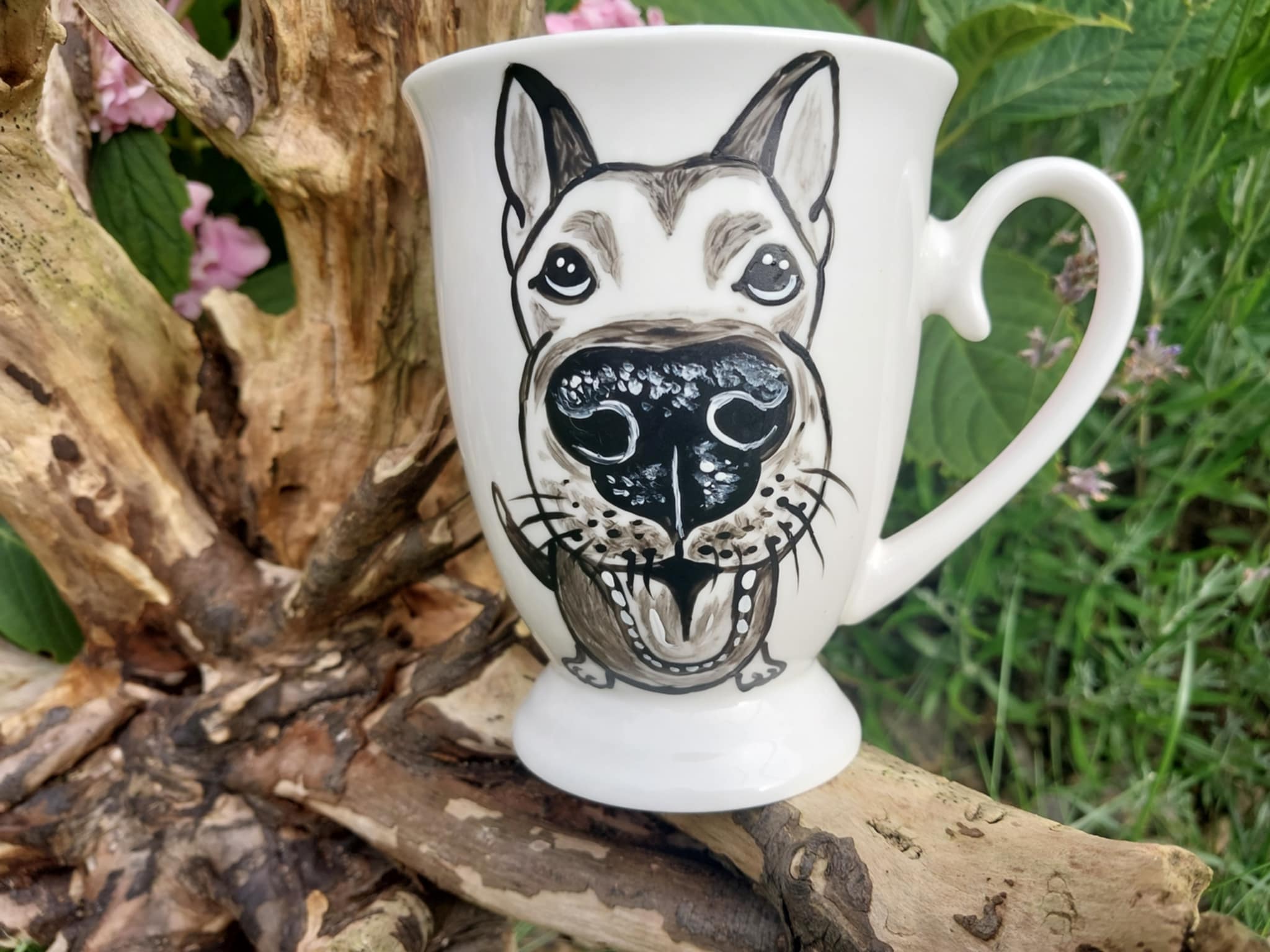 Wyjątkowy, ręcznie malowany kubek Owczarek niemiecki.