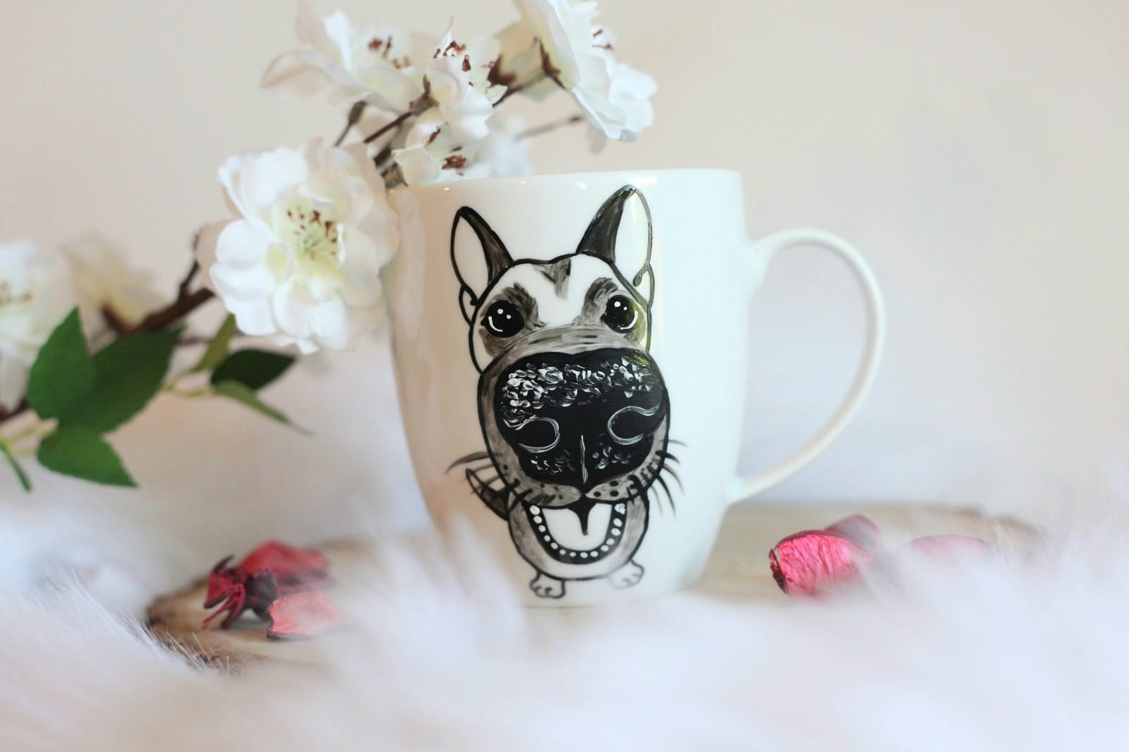 Kubek malowany specjalistycznymi farbami do ceramiki, absolutnie bezpiecznymi, wypalany w 160 stopniach, przez co malunek jest bardzo trwały. By cieszyć się nim dłuuugie lata, zaleca się mycie ręczne :)