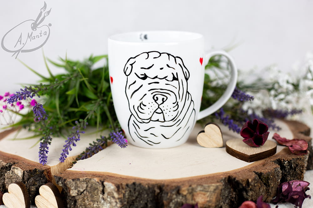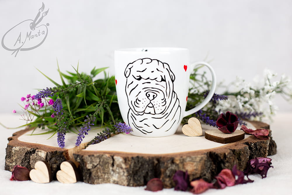 Kubek ręcznie malowany Pies rasy Shar Pei walentynki serduszka