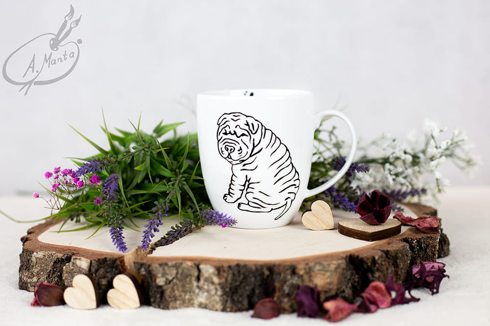 Wyjątkowy, ręcznie malowany kubek Shar Pei.