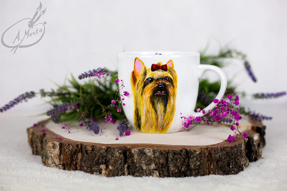 Wyjątkowy, ręcznie malowany kubek Yorkshire terrier.