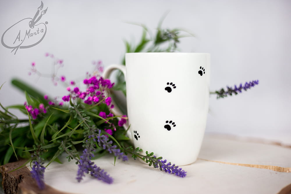Standardowo rewers kubka ma namalowane psie łapki, bez napisów. Jeśli chcesz, to na odwrocie możemy umieścić nazwę rasy, napis widoczny na zdjęciach, imię psa, lub krótką dedykację. Pamiętaj, jeśli chcesz coś na odwrocie, zaznacz to w uwagach do zamówienia.
