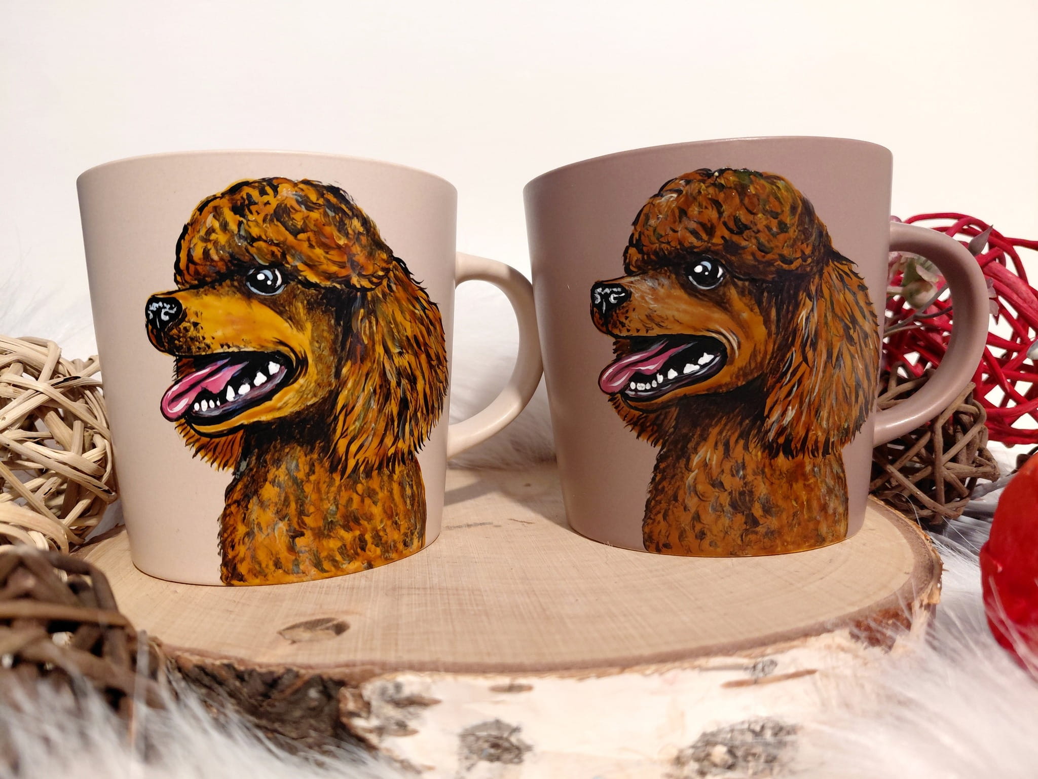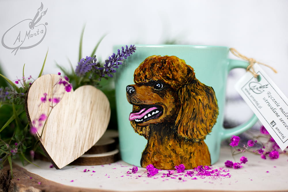 Wyjątkowy, ręcznie malowany kubek Pudel rudy