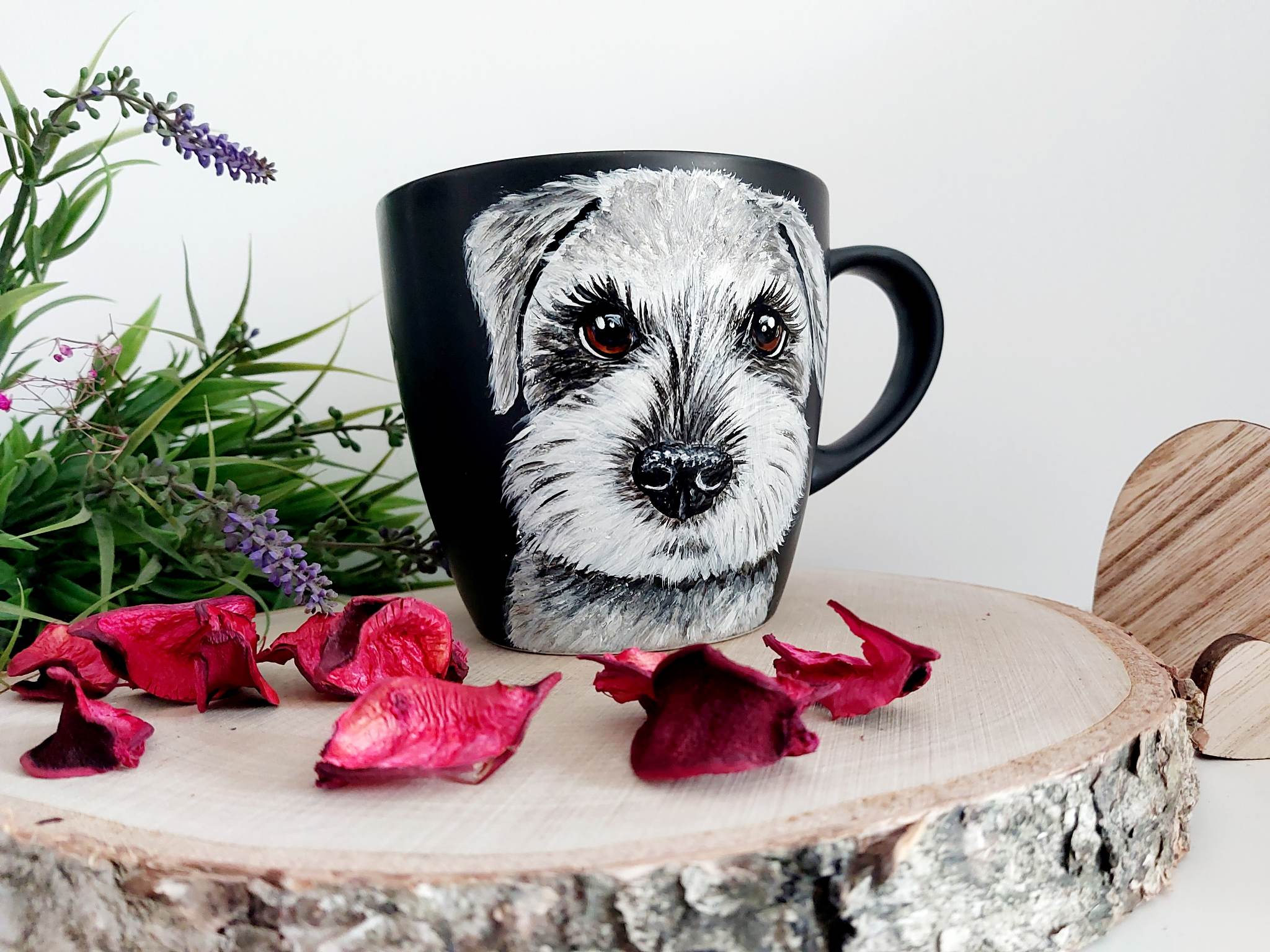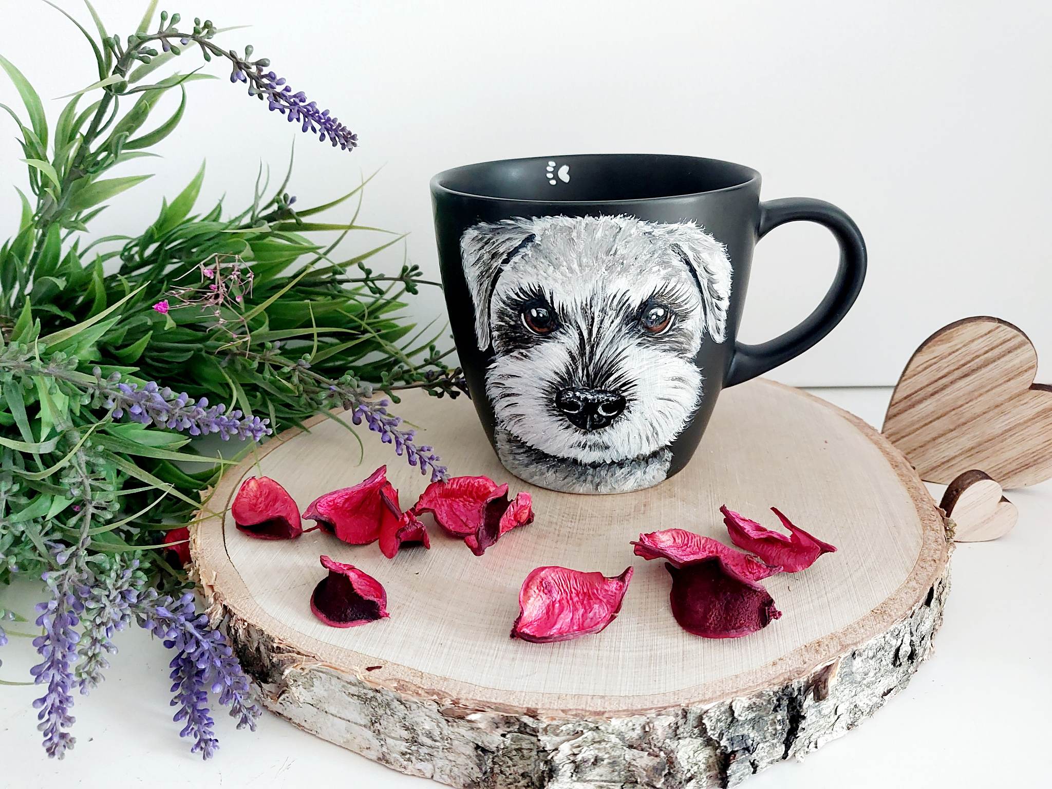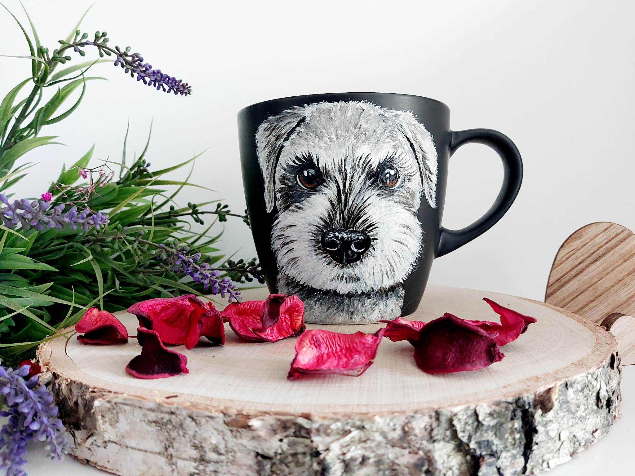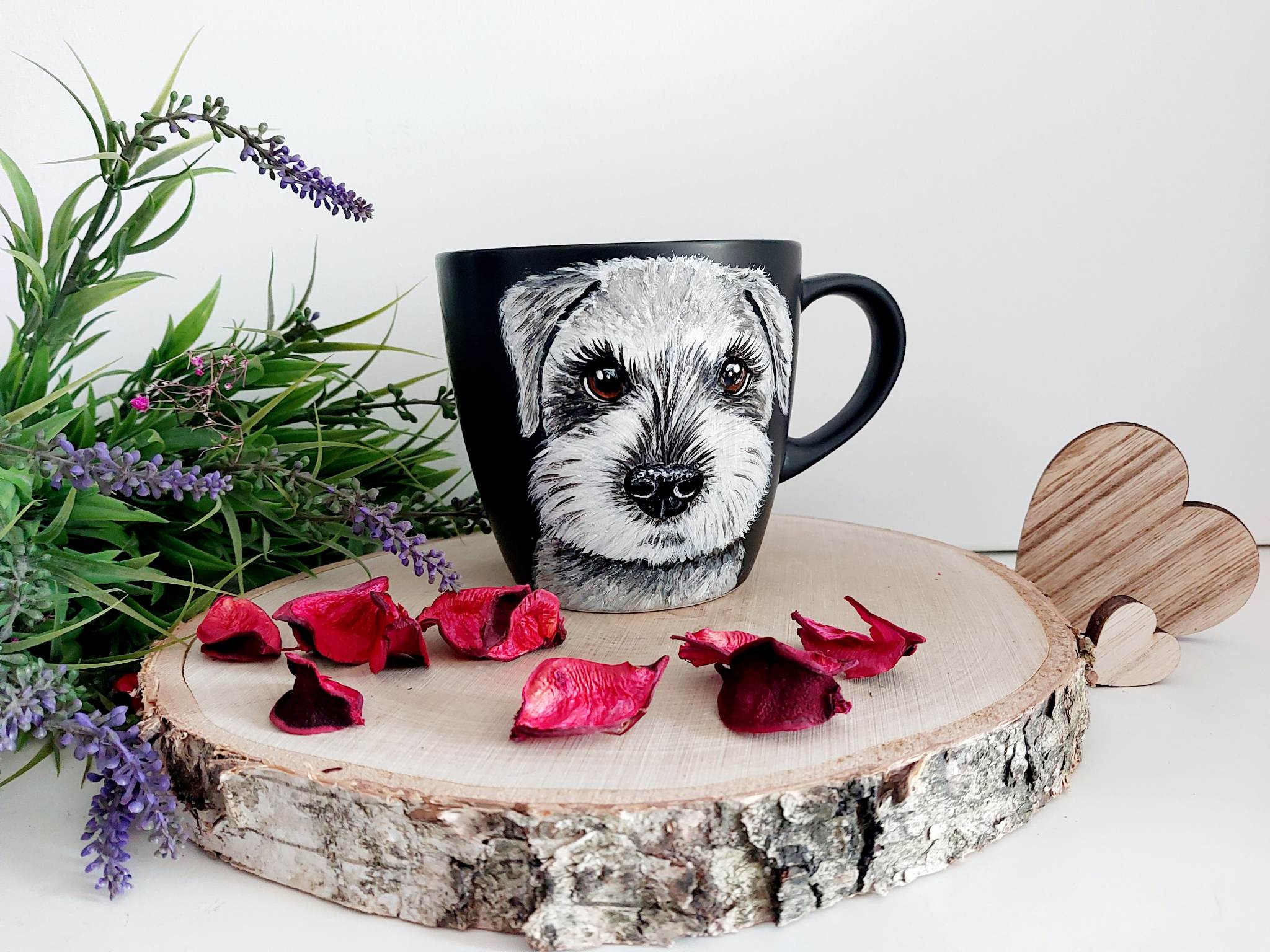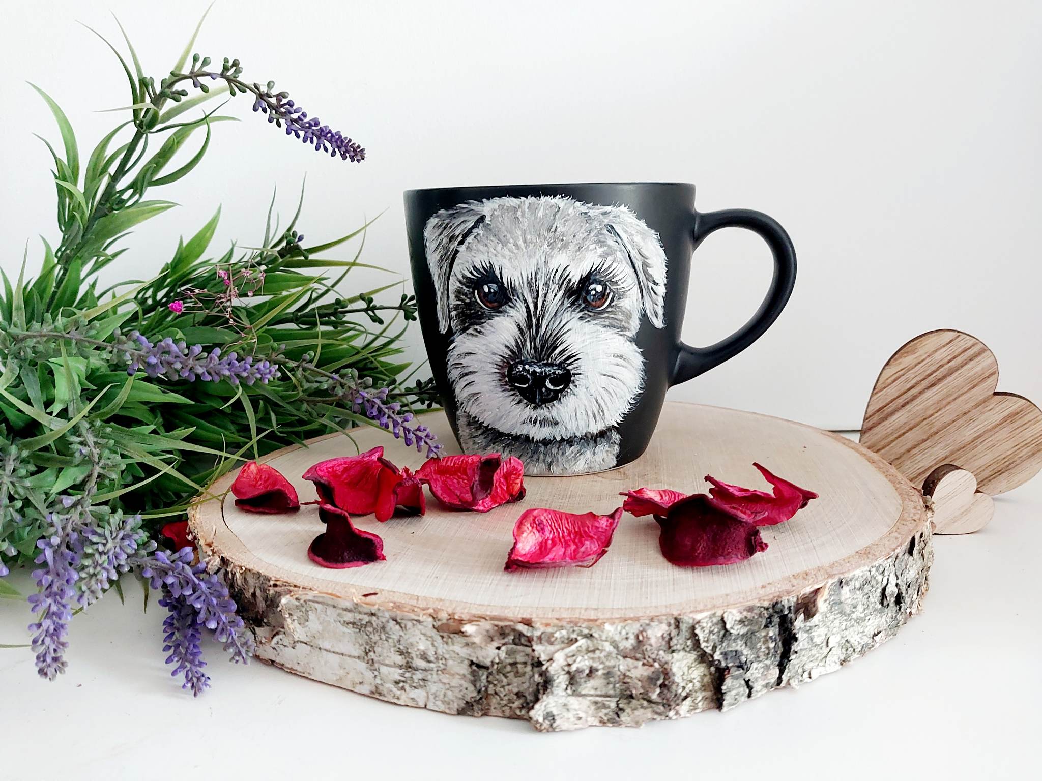 Wyjątkowy, ręcznie malowany kubek Sznaucer Miniaturowy.