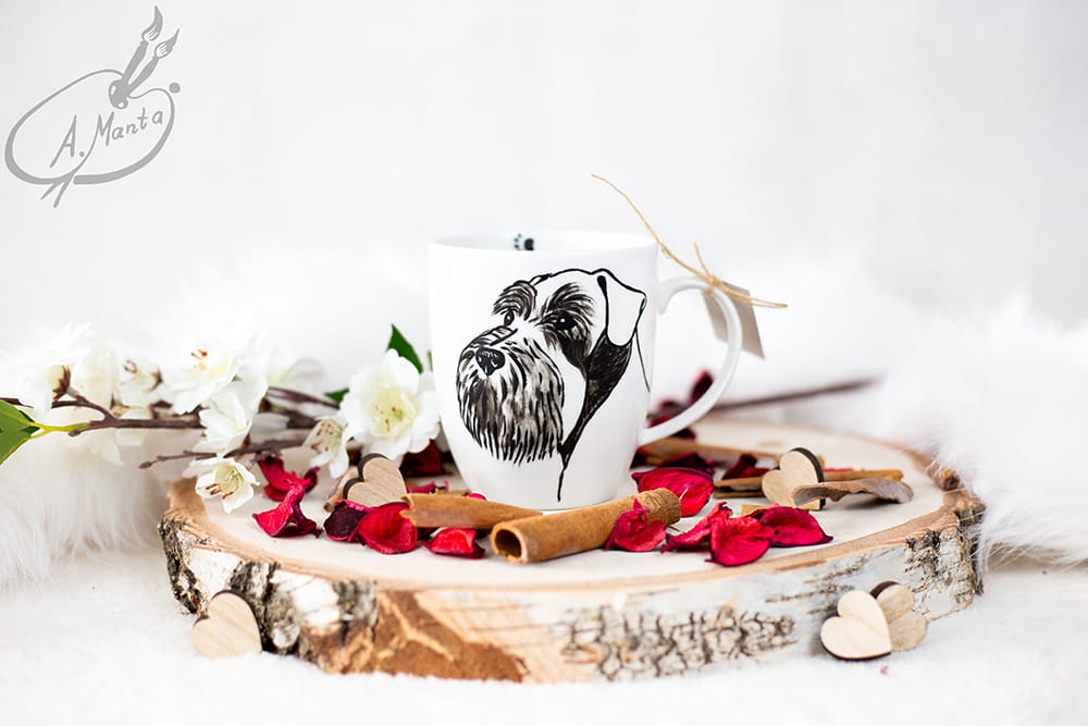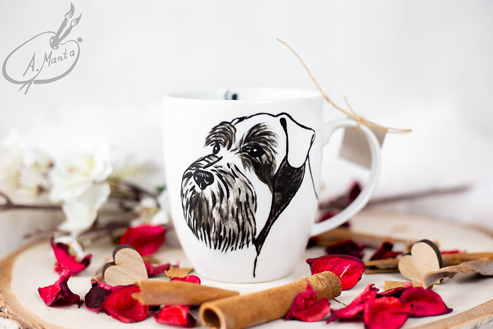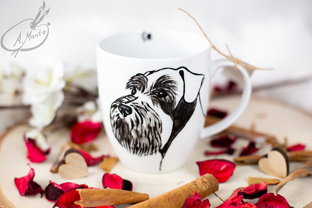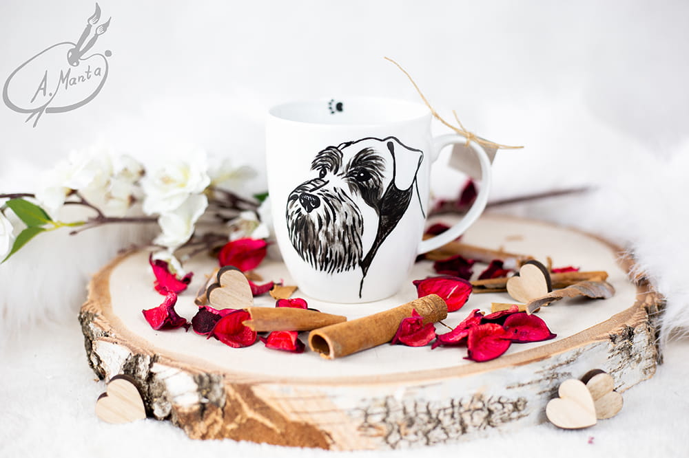 Wyjątkowy, ręcznie malowany kubek Sznaucer.