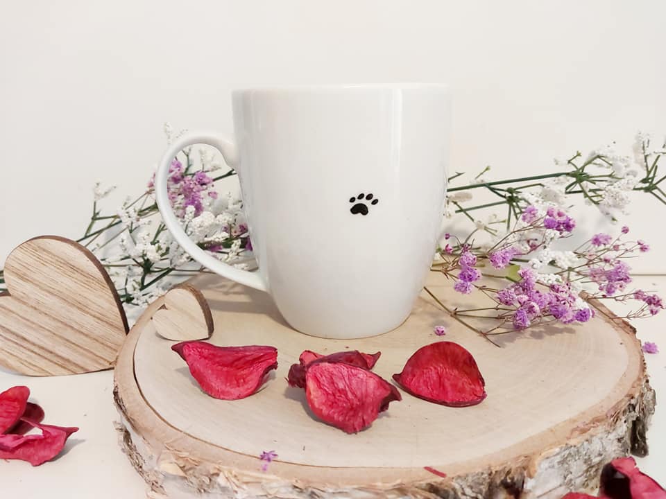 Standardowo rewers kubka ma namalowaną psią łapkę.